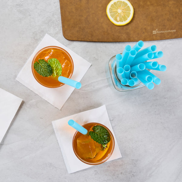 Enhance your eco-friendly beverage service with compostable solutions. Vanish Home Compostable Boba Straws offer an environmentally conscious choice with their home compostable PHA plastic, supporting sustainable operations while maintaining the strength needed for cold drinks. Ideal for busy cafes, these unwrapped boba straws streamline service by eliminating extra unwrapping steps, allowing staff to focus on customer satisfaction during peak hours. With a generous 13 millimeter width, these bubble tea straws ensure effortless sipping of bubble tea, smoothies, and other thick beverages, enhancing the customer experience. Measuring 9.055 inches in length and 0.472 inches in width, these blue straws are not only biodegradable but also recyclable, fulfilling multiple eco-friendly requirements. Upgrade your drink presentation and sustainability efforts with these compostable boba straws today. Each order includes 1000 Vanish Home Compostable Boba Straws.