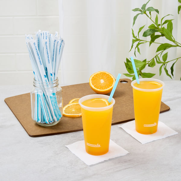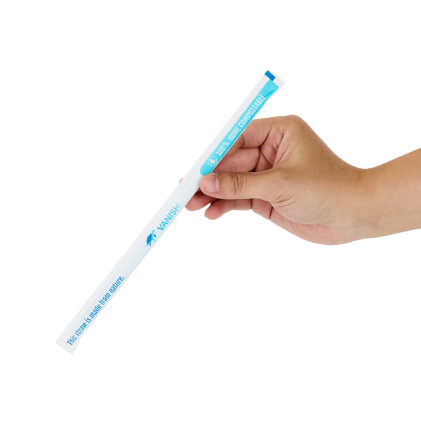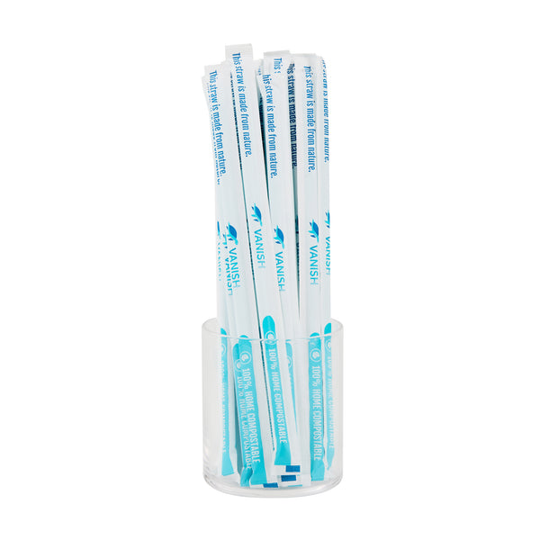 Enhance your beverage service with eco-friendly options. Vanish Compostable Biodegradable Straws offer a sustainable alternative to traditional plastic, crafted from home compostable PHA plastic to significantly reduce environmental impact. These individually wrapped straws ensure maximum hygiene, making them ideal for takeout and delivery services, while their vibrant blue color adds visual appeal to any drink presentation. With a standard length of 8.27 inches and a 7 mm width, these smoothie straws are perfectly suited for effortlessly sipping everything from refreshing soft drinks to thick smoothies. Their sturdy construction resists bending, providing a reliable drinking experience. Elevate your establishment’s sustainability goals with these compostable straws, perfect for quick-service restaurants, cafés, and catering events. Each order includes 1000 Vanish Compostable Biodegradable Straws.