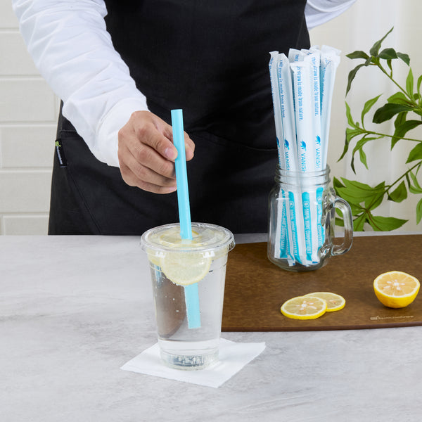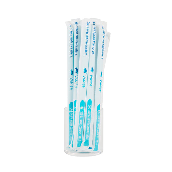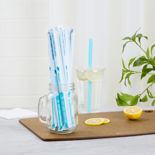 Ensure eco-friendly sipping with sustainable bubble tea straws. Vanish Home Compostable Bubble Tea Straws are crafted from home compostable PHA plastic, supporting eco-friendly initiatives and providing a sustainable alternative to traditional plastics. These jumbo straws are individually wrapped to guarantee hygiene, protecting them from external contaminants and ensuring customer safety. With a 13-millimeter width, these straws are ideal for effortlessly sipping bubble teas, enhancing customer experiences with every sip. The vibrant blue color adds a pop of color to any drink presentation, making these compostable straws an eye-catching choice for cafes and restaurants committed to sustainability. Upgrade your beverage service with these innovative straws and demonstrate your commitment to environmentally responsible practices. Each order includes 100 Vanish Home Compostable Bubble Tea Straws.