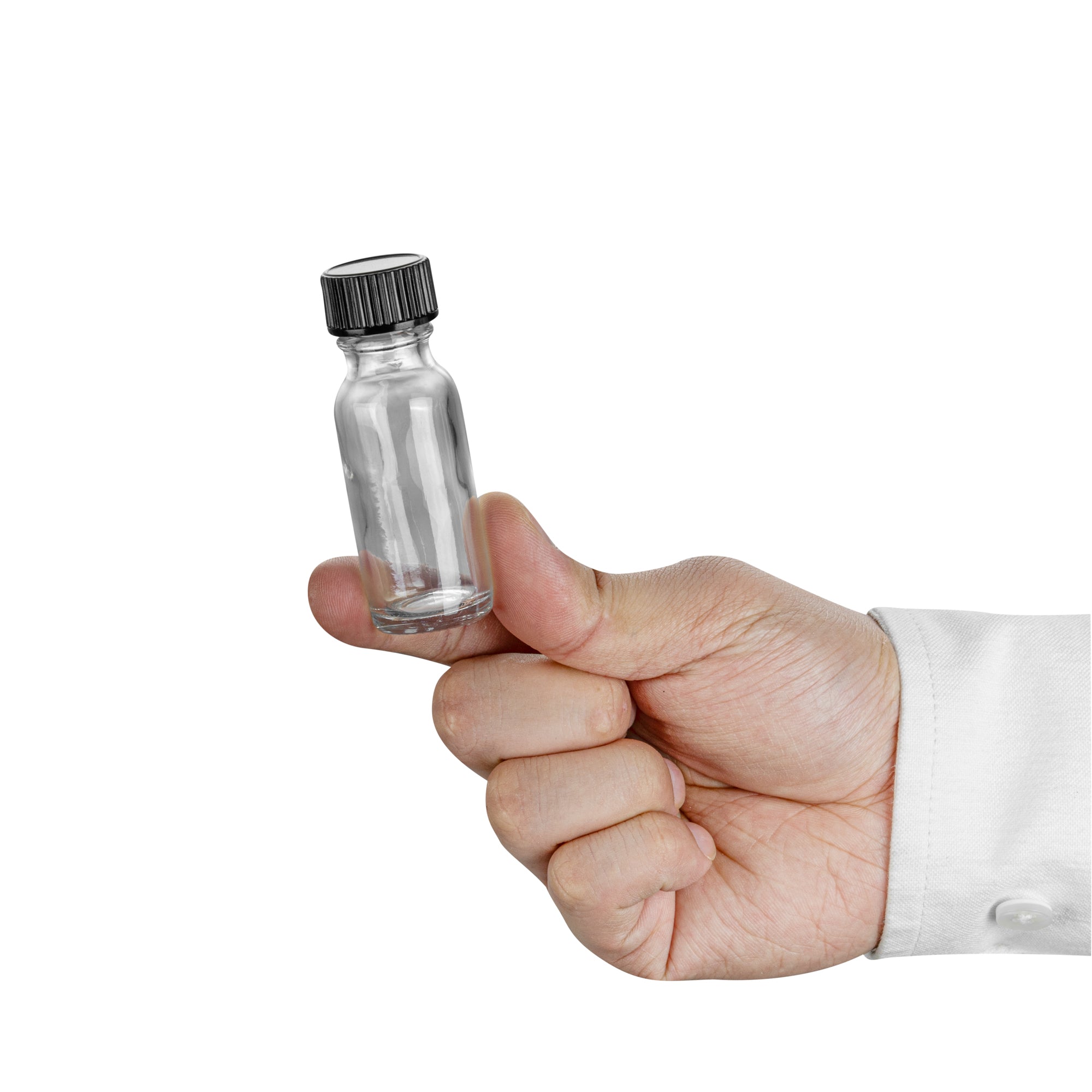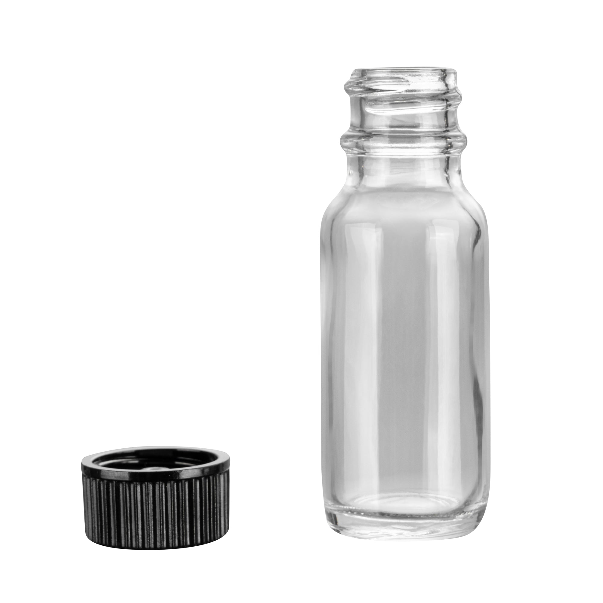 Vetri 0.5 oz Boston Round Clear Glass Bottle - with Black Phenolic Cap - 1