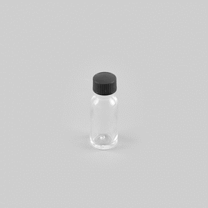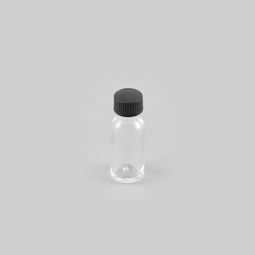 0.5 OZ BOSTON ROUND CLEAR GLASS BOTTLE - WITH BLACK PHENOLIC CAP