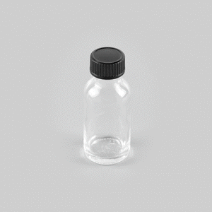 1 OZ BOSTON ROUND CLEAR GLASS BOTTLE - WITH BLACK PHENOLIC CAP