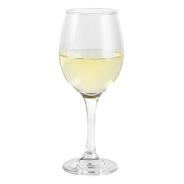 Sip your finest wines with our Vetri 11-ounce All-Purpose Wine Glasses. The unique bowl design of these wine glasses allows them to accommodate red and white wines, ensuring a delightful experience for all guests. With a thick stem, these drinking glasses offer an easy grip and minimize the possibility of breakage, ensuring a long service life. The sturdy foot of these cocktail glasses reduces the risk of toppling over, providing added stability and minimizing spills. Crafted from durable, lead-free soda lime glass, these bar glasses withstand regular use while maintaining their pristine appearance. For added convenience, these beverage glasses are dishwasher-safe, allowing for hassle-free cleaning and saving you time. Measuring 2.44 inches in diameter by 7.8 inches in height, these white wine glasses have a capacity of 10.5 ounces, making them suitable for various beverages. Sold in a 24 count box.