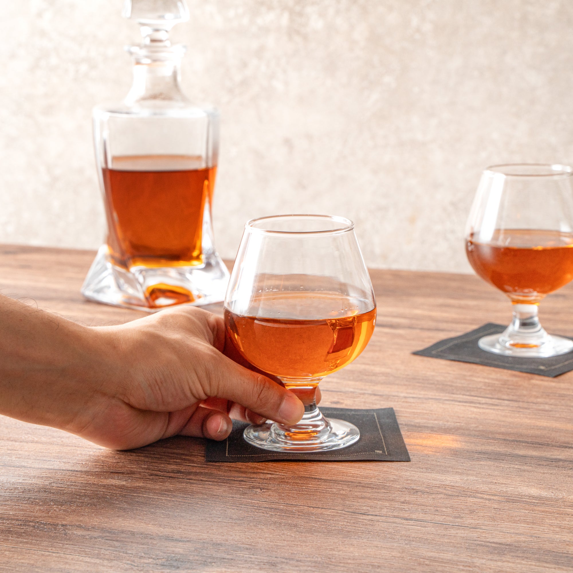Enhance your beverage presentation with our Vetri 9-ounce Brandy Snifter Glasses. These snifter glasses feature a wide bowl that tapers significantly toward the top, maximizing flavor and aroma. Featuring smooth lines and curves, these bourbon glasses complement even the most upscale dining establishments. With unparalleled brilliance and clarity, these scotch glasses showcase your coveted spirits in the best light. Perfect for samples and tasting spirits, these whiskey tasting glasses help control portions of drinks at your bar. The thick stem of these whiskey glasses provides a comfortable and stable grip, enhancing your drinking experience. These 9-ounce glasses have a sturdy foot for added stability and minimize the risk of toppling over to avoid potential spills. Crafted from durable lead-free soda lime glass, these clear glasses withstand regular use while maintaining their pristine appearance. For added convenience, these tasting glasses are dishwasher-safe and facilitate a straightforward cleaning experience. Measuring 2.36 inches in diameter by 4.53 inches in height, these brandy glasses have a capacity of 9 ounces. Sold in a 24 count box.