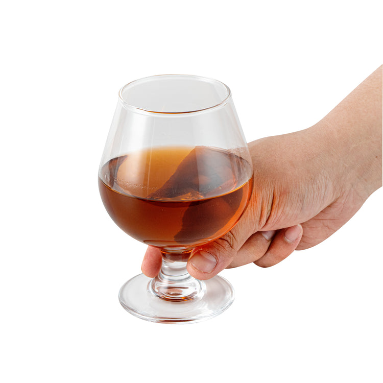 Enhance your beverage presentation with our Vetri 9-ounce Brandy Snifter Glasses. These snifter glasses feature a wide bowl that tapers significantly toward the top, maximizing flavor and aroma. Featuring smooth lines and curves, these bourbon glasses complement even the most upscale dining establishments. With unparalleled brilliance and clarity, these scotch glasses showcase your coveted spirits in the best light. Perfect for samples and tasting spirits, these whiskey tasting glasses help control portions of drinks at your bar. The thick stem of these whiskey glasses provides a comfortable and stable grip, enhancing your drinking experience. These 9-ounce glasses have a sturdy foot for added stability and minimize the risk of toppling over to avoid potential spills. Crafted from durable lead-free soda lime glass, these clear glasses withstand regular use while maintaining their pristine appearance. For added convenience, these tasting glasses are dishwasher-safe and facilitate a straightforward cleaning experience. Measuring 2.36 inches in diameter by 4.53 inches in height, these brandy glasses have a capacity of 9 ounces. Sold in a 6 count box.