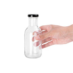 12 OZ CLEAR GLASS STOUT BOTTLE - WITH BLACK METAL LID