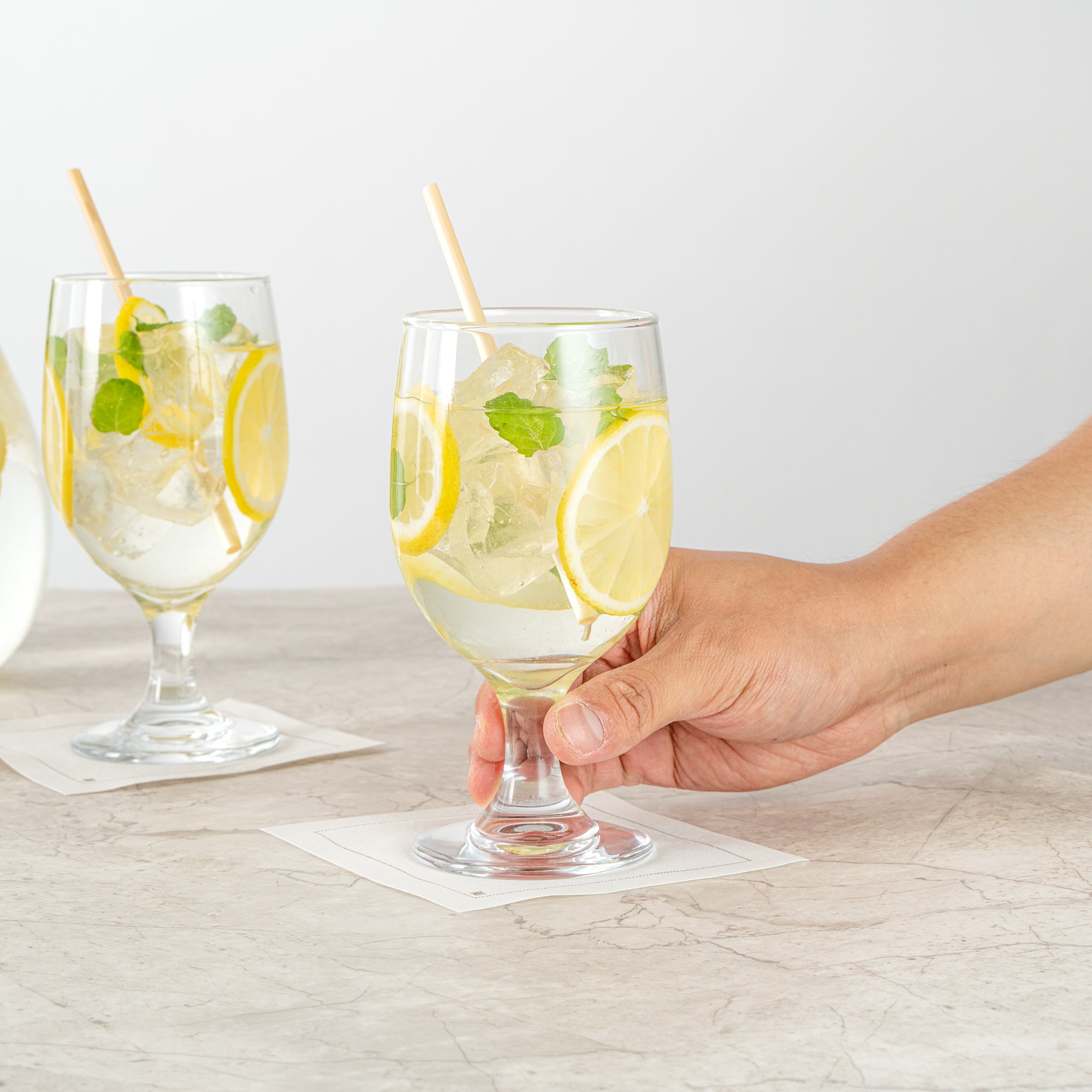 Present yummy cocktails with our Vetri 12-ounce Water Goblet Glasses. These drinking glasses have a crystal-clear finish and expertly showcase your effervescent brews, creating an attractive presentation. The top of these cocktail glasses provides a comfortable opening, allowing drinkers to savor their beverage fully. Featuring a thick stem, these wine glasses ensure optimal stability on trays, countertops, and tables. The robust foot of these bar glasses minimizes the risk of toppling over and reduces the chance of spills. Crafted from durable lead-free soda lime glass, these beverage glasses withstand regular use while maintaining their pristine appearance. Plus, these water glasses are dishwasher-safe and allow for a simple cleaning experience, saving you precious time. Measuring 2.84 inches in diameter by 6.02 inches in height, these bar glasses have a total capacity of 11.5 ounces. Sold in a 24 count box.