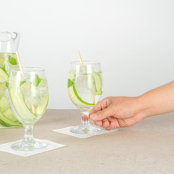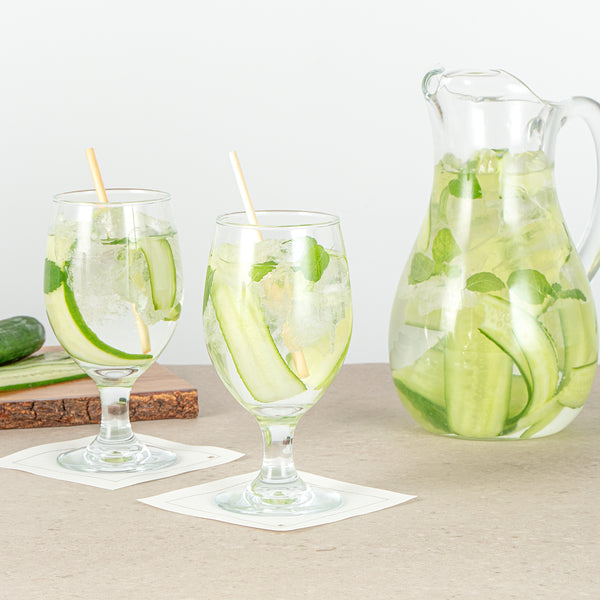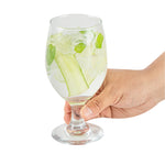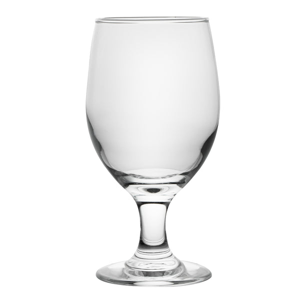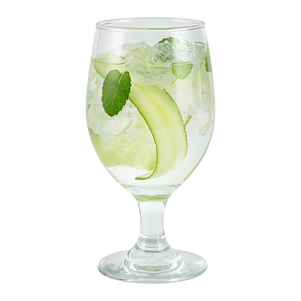 Elevate your beverage service with our Vetri 14-ounce Water Goblet Glasses. With a crystal-clear finish, these drinking glasses expertly display your effervescent brews, creating an unforgettable presentation. These wine glasses have a comfortable opening at the top, allowing drinkers to savor every sip, making them ideal for any occasion. The thick stem of these cocktail glasses ensures optimal stability on trays, countertops, and tables. These water glasses are designed with a robust foot and minimize the risk of toppling over, effectively reducing the chances of spills. Crafted from durable lead-free soda lime glass, these beverage glasses withstand regular use while maintaining their pristine appearance. Dishwasher-safe for convenience, these bar glasses provide a simplified cleaning for easy upkeep and maintenance. These glass goblets measure 2.72 inches in diameter by 6.5 inches in height and can hold up to 14 ounces. Sold in a 6 count box.