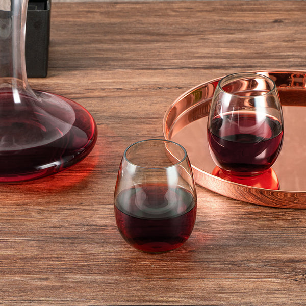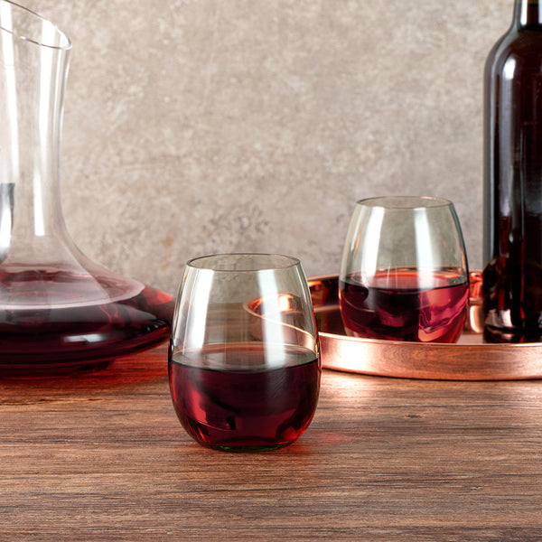 Present your signature cocktails with our Vetri 15-ounce Green Stemless Wine Glasses. With a stemless body, these wine glasses provide optimal stability on any table or countertop. Designed with a rolled rim, these stemless wine glasses ensure easy sipping for guests. The green finish of these white wine glasses adds a vibrant and elegant touch, enhancing the color of your wine for a more visually appealing experience. Crafted from lead-free soda lime glass, these bar glasses are durable and can withstand daily use while maintaining their pristine appearance. These red wine glasses are dishwasher-safe and allow for a hassle-free cleaning experience. Measuring 3.66 inches in diameter by 4.33 inches in height, these 15-ounce glasses are ideal for serving your favorite wines. Sold in a 24 count box.