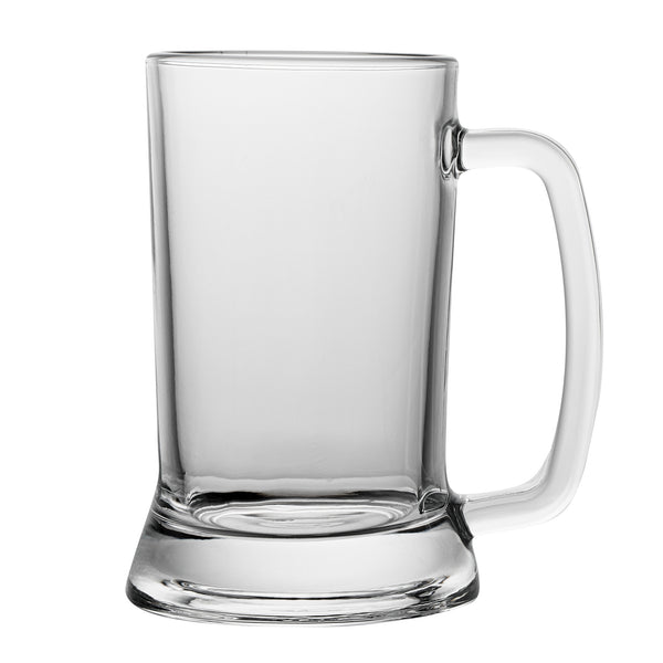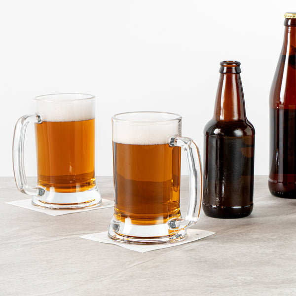 Elevate your bar's drinkware selection with our Vetri 16-ounce Beer Mug Glasses. The smooth rim of these beer mugs provides a comfortable sipping experience, enhancing the overall enjoyment for your patrons. Plus, the clear glass design of these beverage mugs allows your customers to appreciate the vibrant colors and bubbles of their beer, adding an extra touch of sophistication. Featuring a wide base, these beer glasses remain upright throughout the bustling night at your bar or pub. With an easy-to-grip handle, these pint beer glasses ensure convenient serving and transport. Crafted from durable, lead-free soda lime glass, these glass beer mugs withstand regular use while maintaining their pristine appearance. For easy maintenance, these party mugs are dishwashable, making cleanup a breeze. With a capacity of 16 ounces, these beverage glasses measure 3.23 inches in diameter by 5.67 inches in height. Sold in a 6 count box.