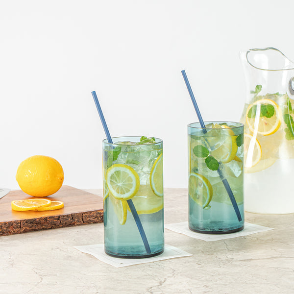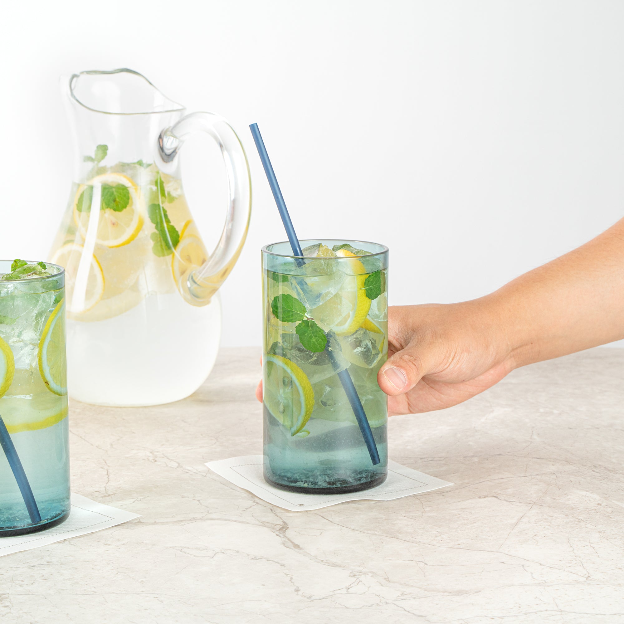 Serve iced tea with our Vetri 16-ounce Blue Beverage Glasses. The blue finish of these drinking glasses creates an invigorating tabletop and a unique complement to your signature drinks. These glass tumblers feature a smooth and rolled rim, providing a comfortable sipping experience. The flat base of these water glasses ensures unparalleled balance, allowing servers to confidently rest them on trays, tabletops, and counters. Crafted from lead-free soda lime glass, these beverage glasses withstand everyday use while maintaining a pristine appearance. These 16-ounce glasses are dishwasher-safe for a straightforward cleaning experience. Measuring 3.03 inches in diameter by 5.51 inches in height, these versatile drinking glasses have a capacity of 16 ounces. Sold in a 6 count box.