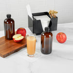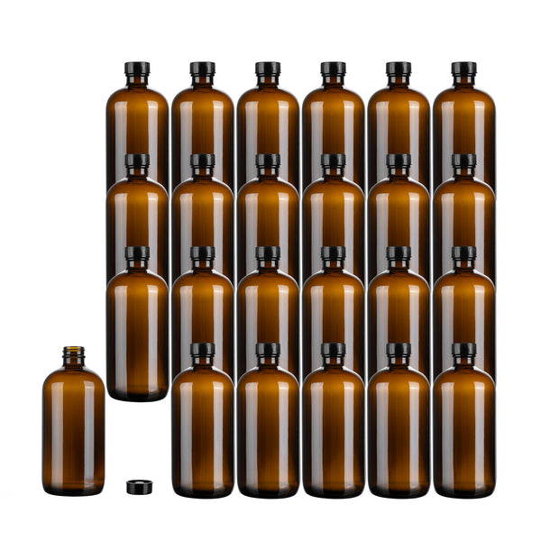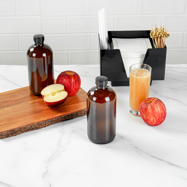 Enhance your storage solutions with our Vetri 16-ounce Boston Round Amber Glass Bottles. These glass bottles coem equipped with black phenolic caps that provide a secure, airtight seal, ideal for preserving liquids and extending shelf life. Crafted from premium soda lime glass, these amber bottles offer excellent durability, making them perfect for displaying and storing various liquids. Featuring a narrow mouth, theseglass bottles with lids allow for controlled pouring and minimize spills, ensuring liquids are stored securely. With an amber finish, these Boston glass bottles shield contents from UV light, making them perfect for preserving light-sensitive liquids and extending their shelf life. Designed for easy maintenance, these empty bottles are dishwasher-safe, facilitating a quick and hassle-free cleaning experience. Measuring 2.94 inches in diameter by 6.64 inches in height, these amber glass bottles have a total capacity of 16 ounces, making them ideal for various storage needs. Sold in a 12 count box.
