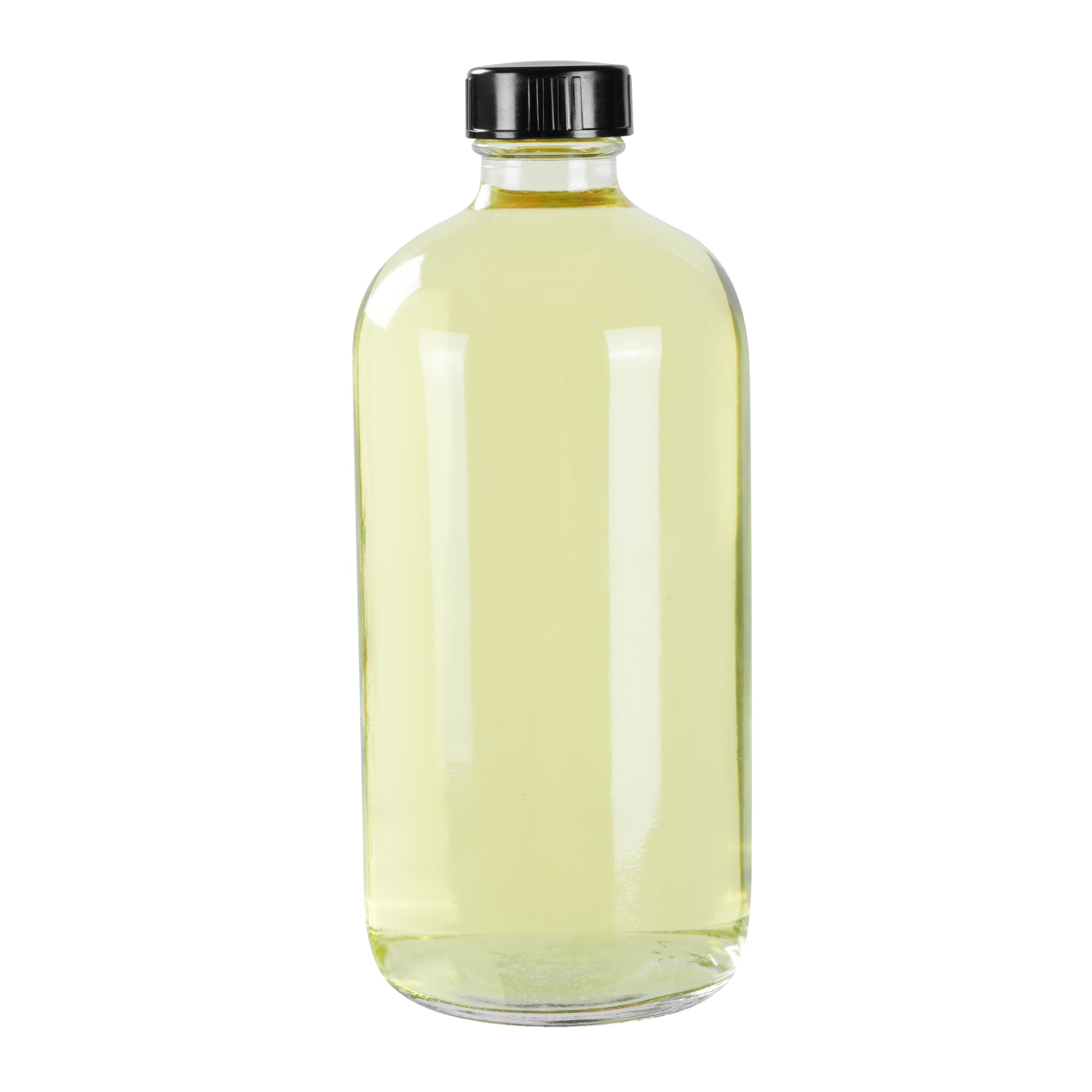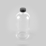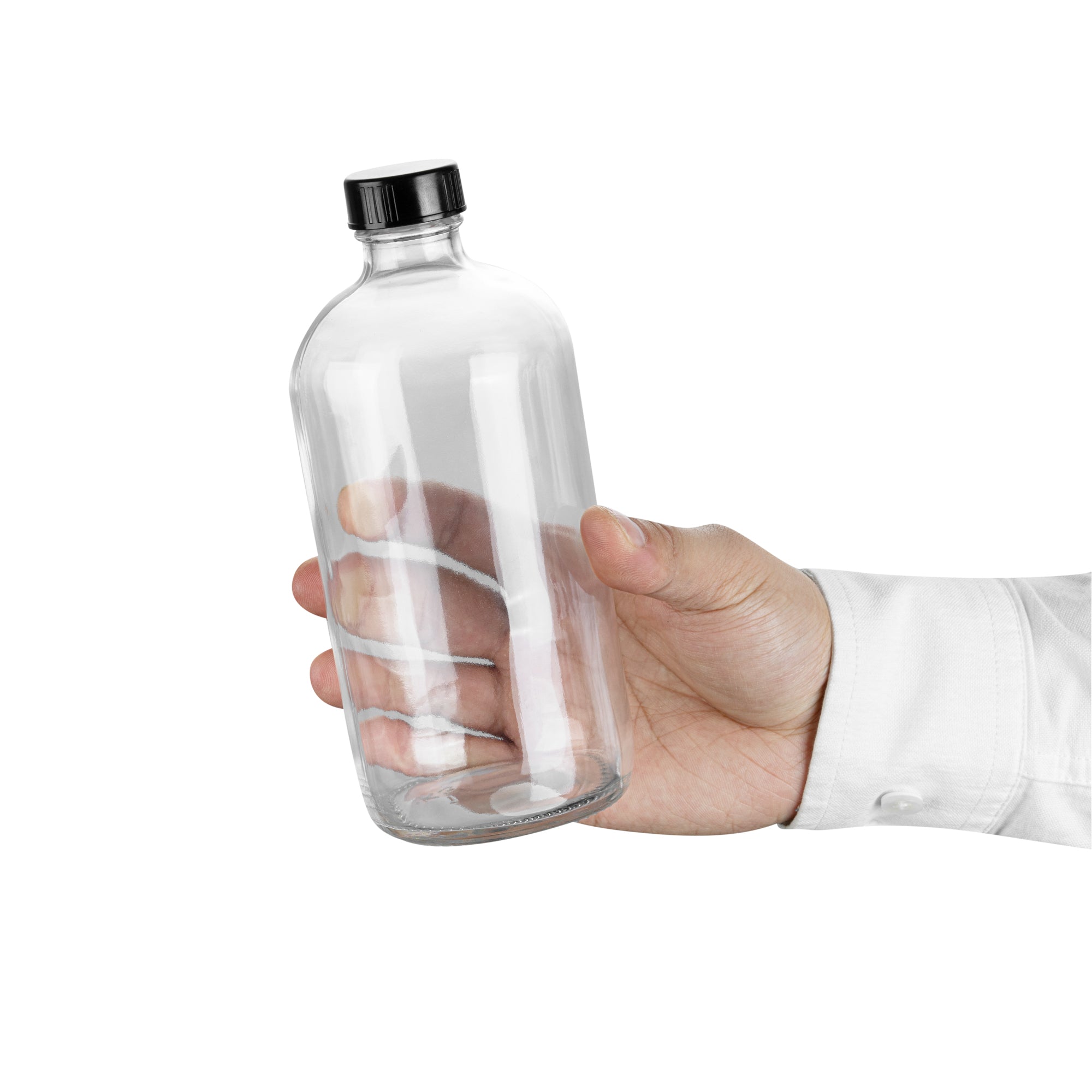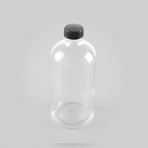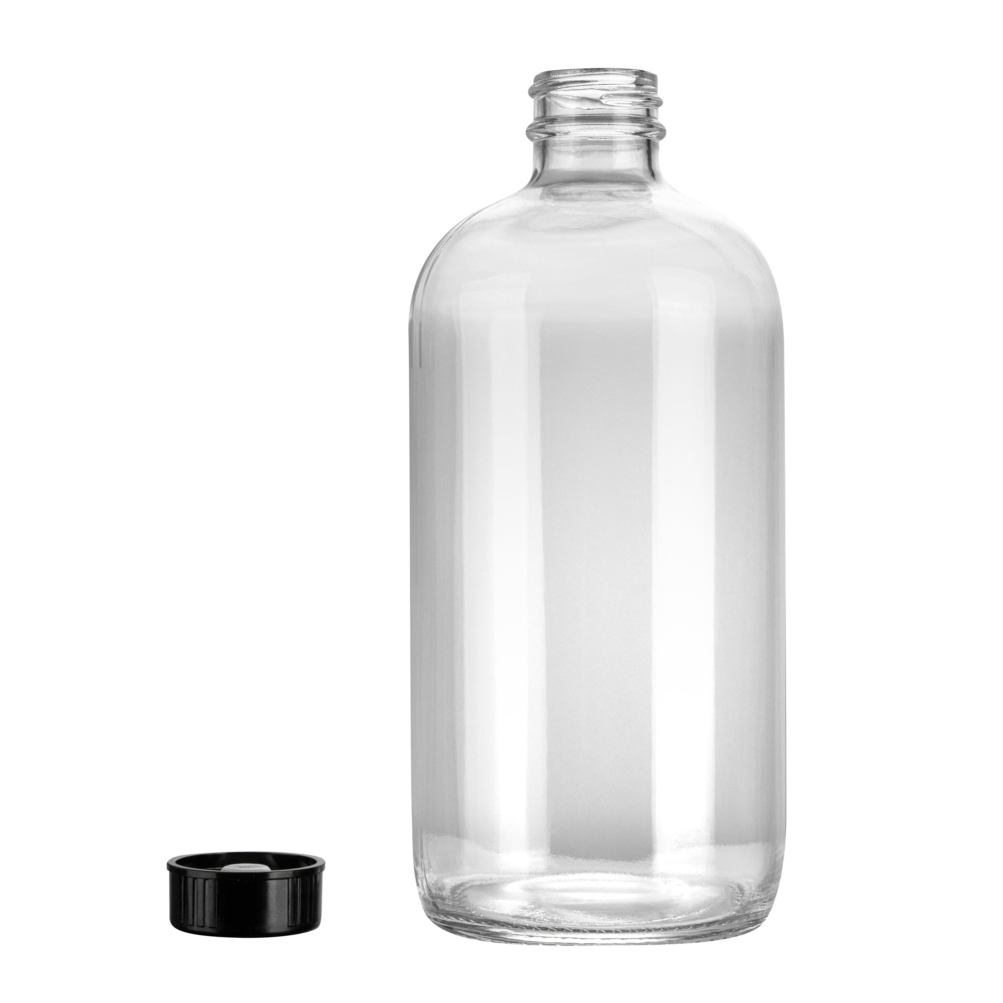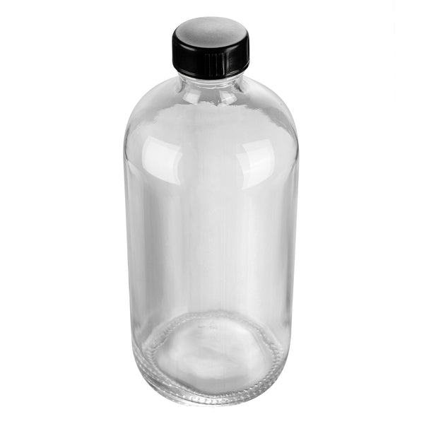 16 OZ BOSTON ROUND CLEAR GLASS BOTTLE - WITH BLACK PHENOLIC CAP