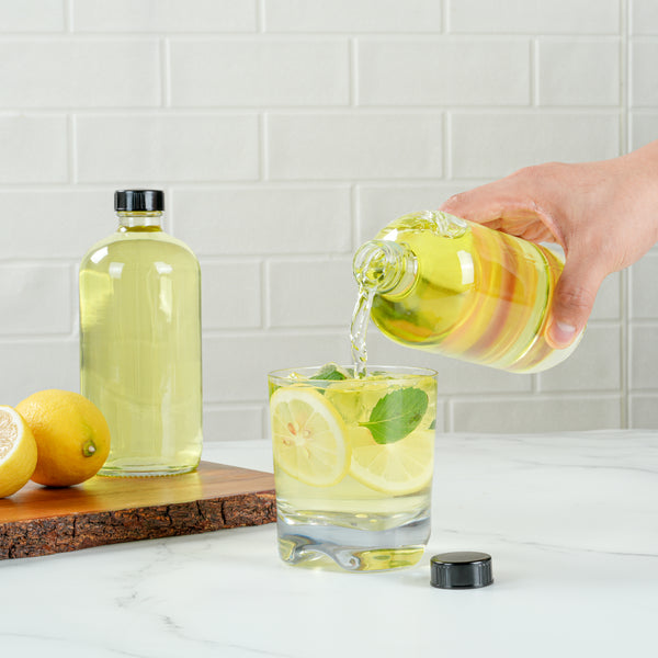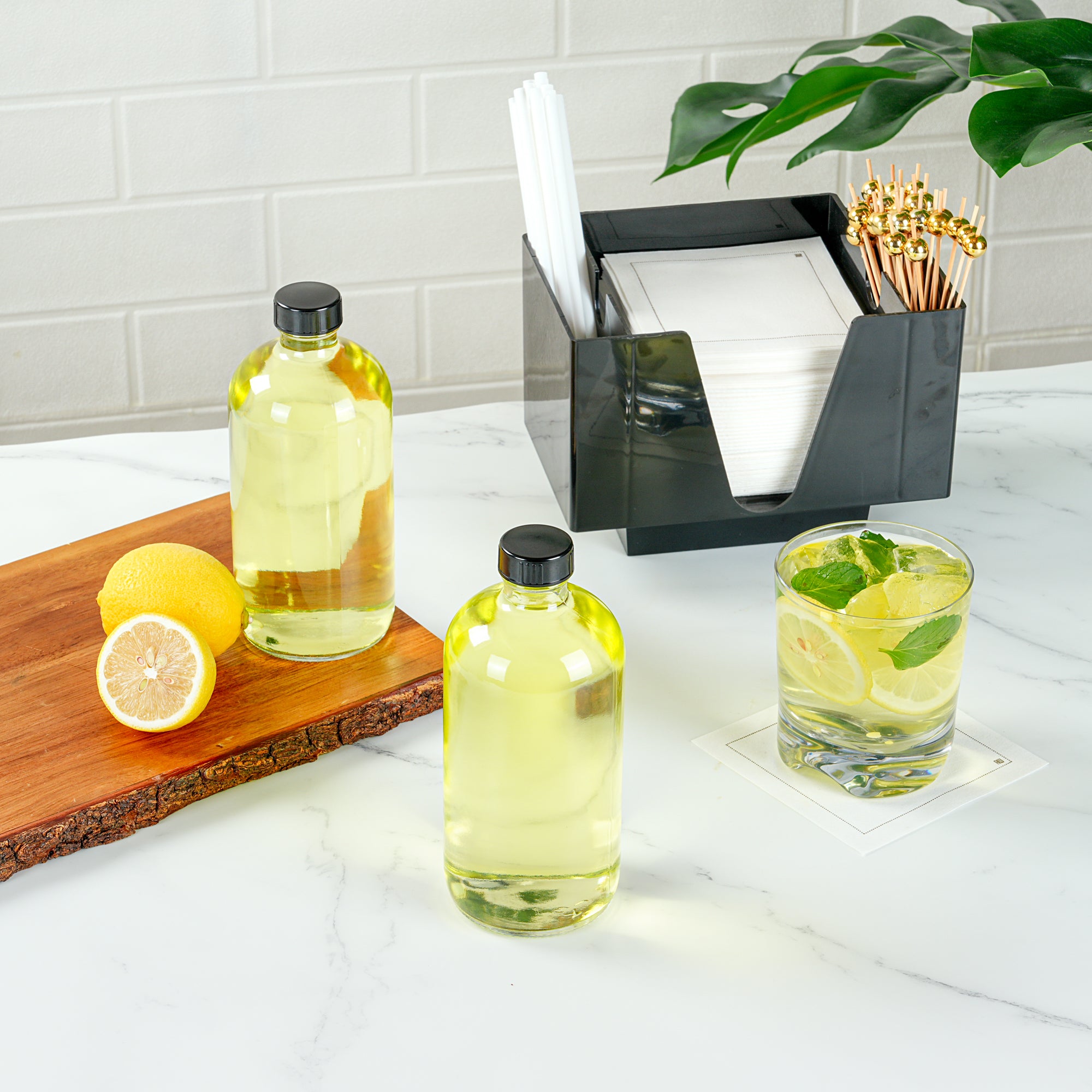 Enhance your storage and presentation with our Vetri 16-ounce Boston Round Clear Glass Bottles. These glass bottles with black phenolic caps provide a secure, airtight seal, ideal for preserving liquids and extending shelf life. Made from premium soda lime glass, these empty bottles offer excellent durability and clarity, making them perfect for displaying and storing various liquids. The narrow mouth of these clear glass bottles allows for controlled pouring and minimizes spills, making them ideal for storing liquids securely. Featuring a clear finish, these Boston glass bottles showcase the contents inside, offering a clean presentation ideal for a variety of liquids. These glass bottles with lids are dishwasher-safe, ensuring easy maintenance and a quick cleaning experience. Each of these Boston bottles has a capacity of 16 ounces and measures 2.94 inches in diameter by 6.64 inches in height. Sold in a 12 count box.