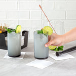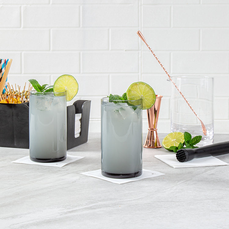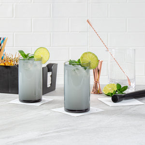 Serve your signature cocktails with our Vetri 16-ounce Gray Beverage Glasses. The gray finish of these beverage glasses enhances the presentation of your beverages, making them ideal for both casual gatherings and formal events. These drinking glasses feature a rolled rim that provides comfortable sipping and is perfect for placing garnishes. The flat base of these cocktail glasses ensures unparalleled balance, allowing servers to rest them on trays, tabletop, and counters confidently. These water glasses are created from soda lime glass that does not contain lead, making them ideal for daily use while maintaining their pristine appearance. Plus, these glass tumblers are dishwashable and offer a no-hassle cleaning experience. These gray glasses measure 3.03 inches in diameter by 5.51 inches in height and can hold up to 16 ounces. Sold in a 24 count box.