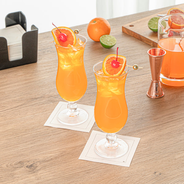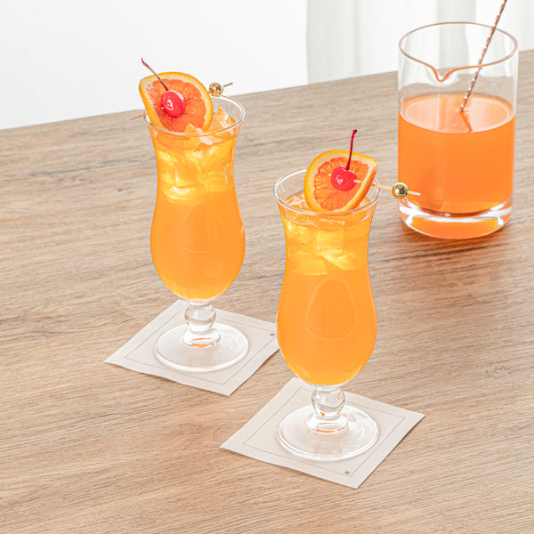 Elevate your bar service with our Vetri 16-ounce Hurricane Glasses. With their classic, fluted bowl shape, these hurricane glasses offer a sleek and sophisticated appearance. These cocktail glasses feature a sturdy, footed base for added style and stability on tabletops. The exceptional clarity of these beverage glasses allows for complete content visibility, showcasing your drinks for a stylish presentation. Crafted from durable, lead-free soda lime glass, these drinking glasses withstand regular use while maintaining their pristine look. These pina colada glasses are dishwasher-safe, ensuring hassle-free cleaning and saving you valuable time. Holding up to 15.5 ounces, these clear glasses measure 3.15 inches in diameter by 8.27 inches in height. Sold in a 24 count box.