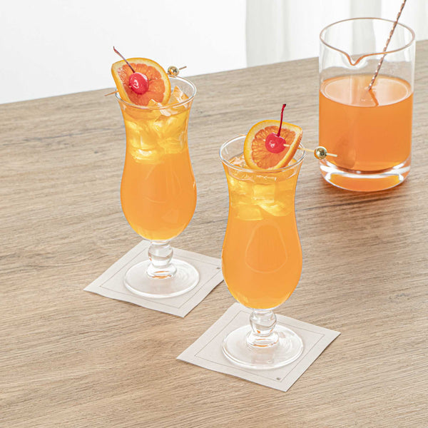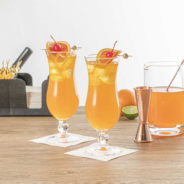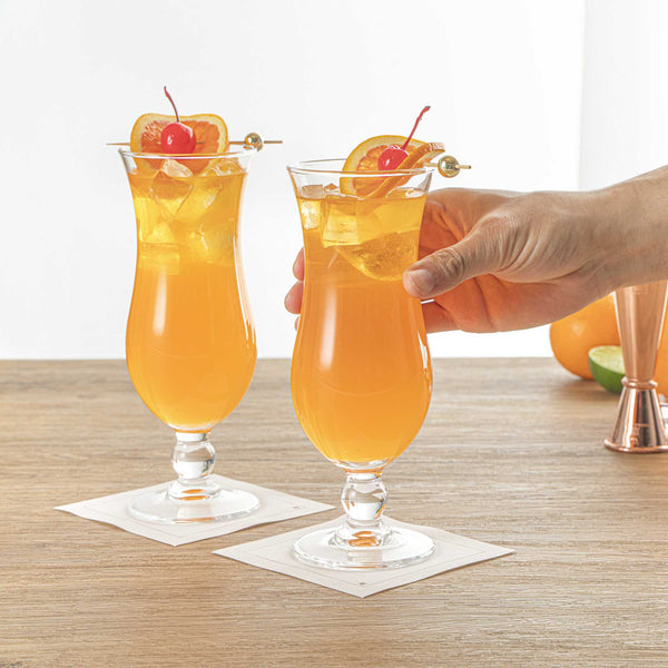 Elevate your bar service with our Vetri 16-ounce Hurricane Glasses. With their classic, fluted bowl shape, these hurricane glasses offer a sleek and sophisticated appearance. These cocktail glasses feature a sturdy, footed base for added style and stability on tabletops. The exceptional clarity of these beverage glasses allows for complete content visibility, showcasing your drinks for a stylish presentation. Crafted from durable, lead-free soda lime glass, these drinking glasses withstand regular use while maintaining their pristine look. These pina colada glasses are dishwasher-safe, ensuring hassle-free cleaning and saving you valuable time. Holding up to 15.5 ounces, these clear glasses measure 3.15 inches in diameter by 8.27 inches in height. Sold in a 6 count box.