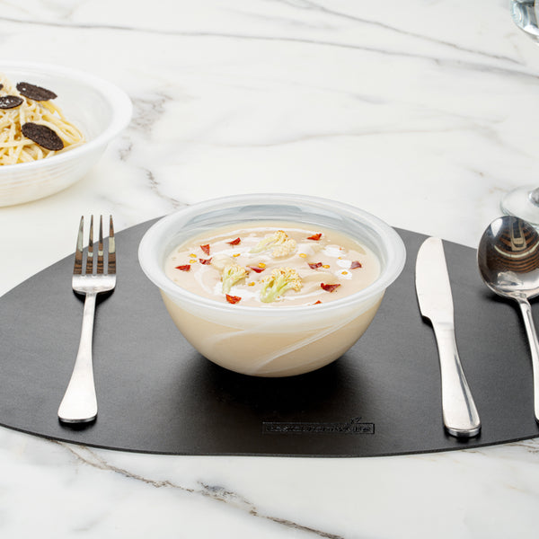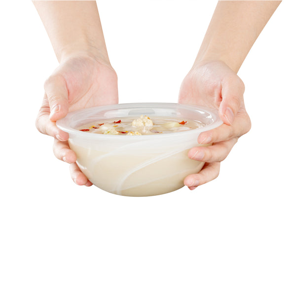 Make stunning food presentations by serving your dishes in our Vetri Round White Glass Solar Bowls. These decorative glass bowls are made of supreme quality soda-lime glass without lead, eliminating the leach of unwanted substances into your food. Conveniently use these serving glass bowls to serve hot or cold foods, as they withstand up to 140F. Manufactured in a way to save your time and energy, these solar glass serving bowls are dishwashable. With a translucent white finish, these solar serving bowls enhance your table settings. With a 6-inch diameter and a 2.5-inch height, these bowls have a capacity of 16 ounces and let you serve pasta and salads. Shipped in a 6 count box.