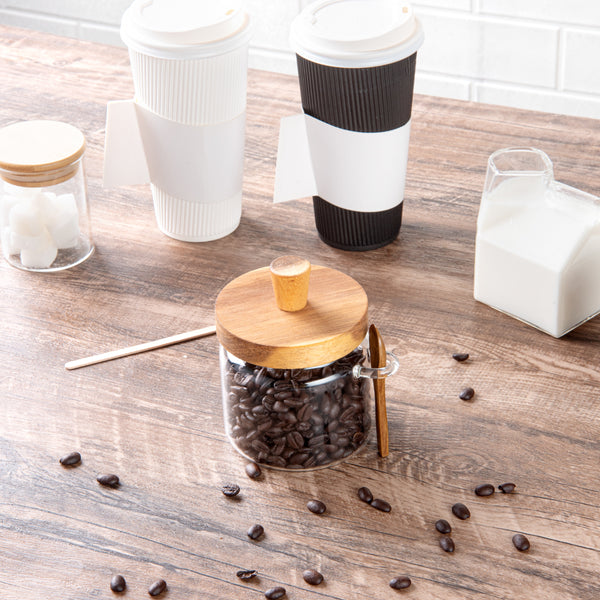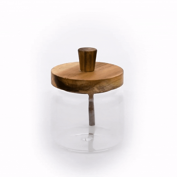 17 OZ GLASS STORAGE JAR - WITH ACACIA LID AND SPOON