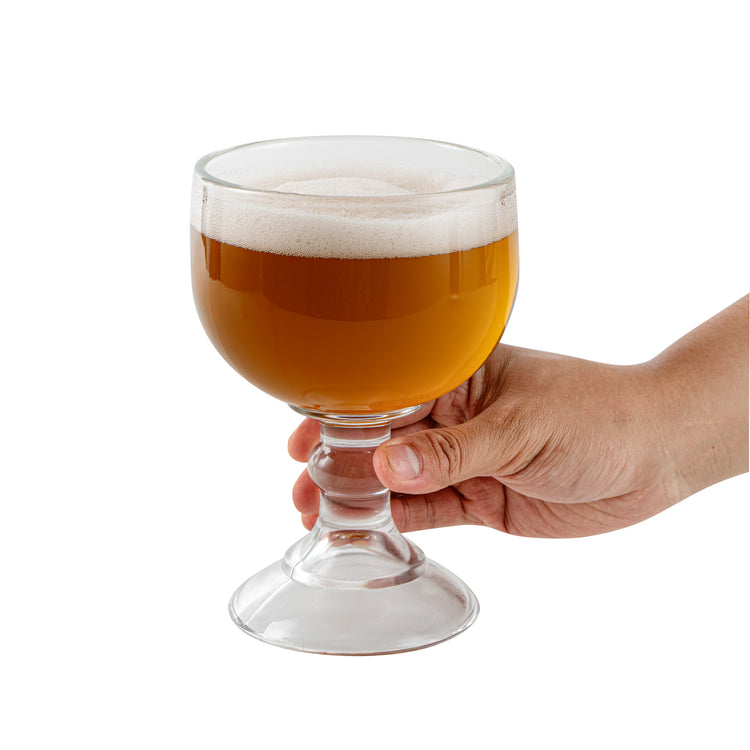 Elevate your beverage presentation with our Vetri 18-ounce Schooner Glasses. These clear glasses feature a broad, curved bowl that tapers into a sturdy, rounded base, ideal for showcasing wines, cocktails, and other drinks. The wide bowl of these wine glasses allows ample space to enjoy and appreciate the rich aromas of your beverages. With their stable base, these beverage glasses minimize the risk of tipping over, ensuring a secure experience for your guests. Perfect for stirring and mixing, these cocktail glasses are versatile additions to any bar or restaurant. Crafted from durable lead-free soda lime glass, these drinking glasses withstand regular use while maintaining their pristine appearance. Dishwasher-safe for convenience, these red wine glasses save you time with efficient cleaning. Measuring 4.45 inches in diameter by 6.89 inches in height, these clear drinking glasses have a generous capacity of 18 ounces. Sold in a 6 count box.