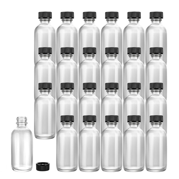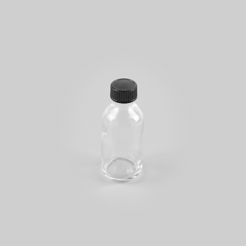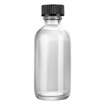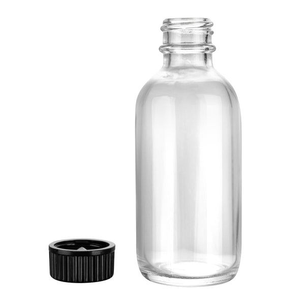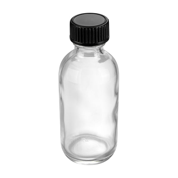 2 OZ BOSTON ROUND CLEAR GLASS BOTTLE - WITH BLACK PHENOLIC CAP