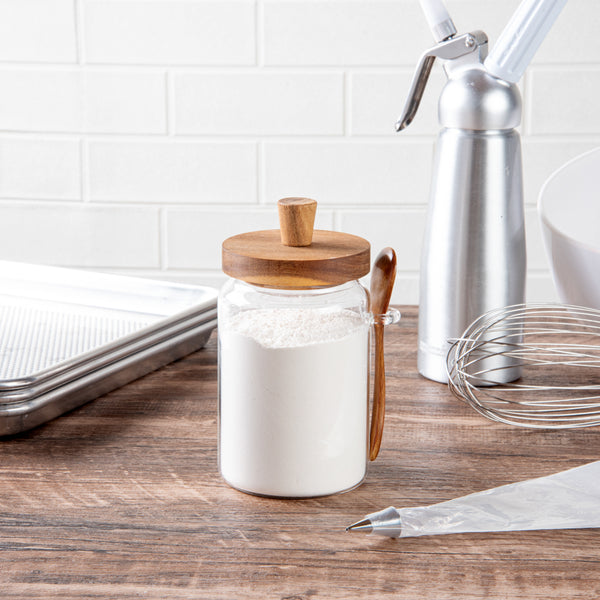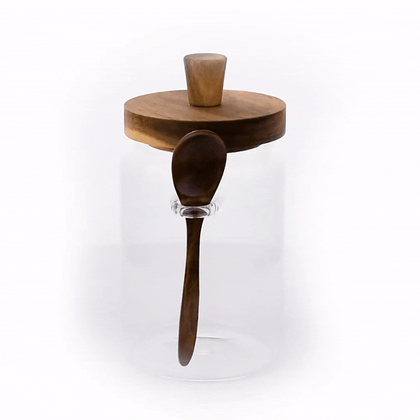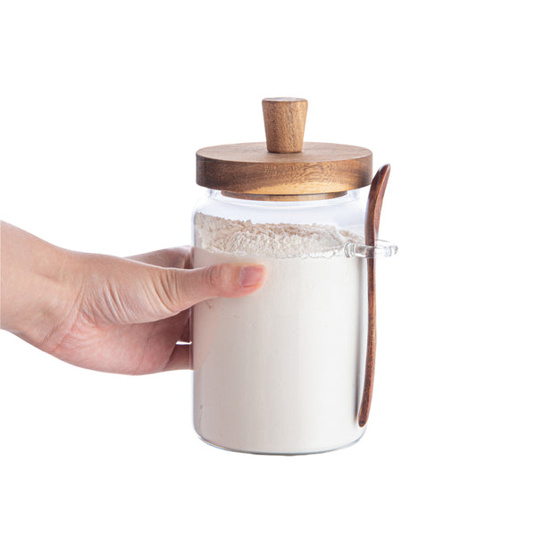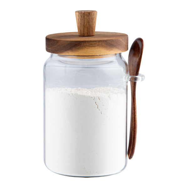 29 OZ GLASS STORAGE JAR - WITH ACACIA LID AND SPOON