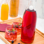 Serve up beverages in a unique way with our Vetri 33.8-ounce Nostalgic Swing Top Glass Bottles. Featuring a swing top cap, these resealable glass bottles are leak-resistant providing mess-free service at your restaurant, cafe, catered event, and more. Crafted from premium glass, these durable flip top bottles charmingly display refreshing drinks and keep them chilled for guests to enjoy. Use these flip-top glass bottles to beautifully present fruity red wine sangria at your restaurant, or to stylishly serve crisp water at a catered luncheon. These 33.8-oz swing top bottles measure 3.4 inches wide by 12.4 inches tall and ship in a 10 count box.