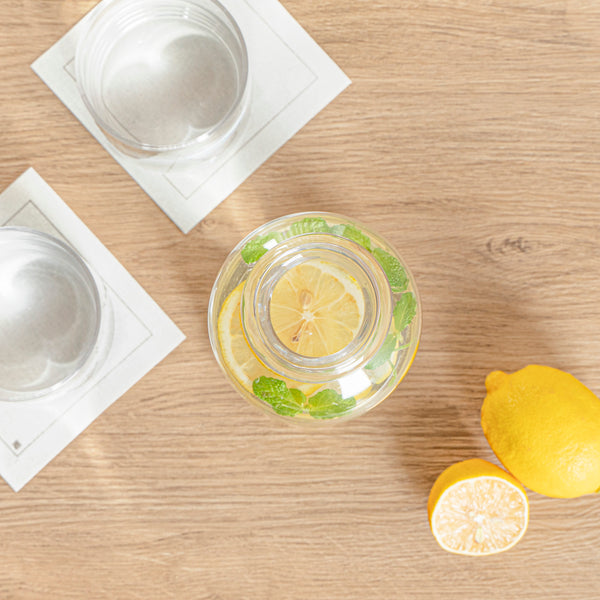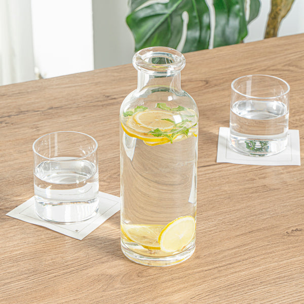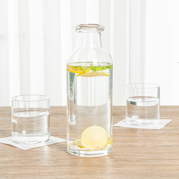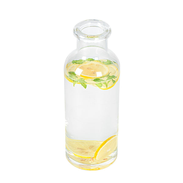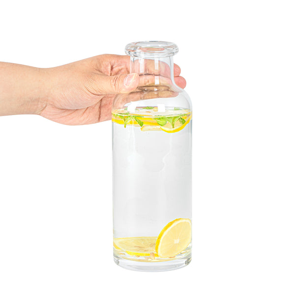 Serve freshly made juice with our Vetri 40-ounce Glass Water Bottles. These glass bottles boast a generous 40-ounce capacity, making refills infrequent and allowing your staff to focus on providing superior service. The crystal-clear glass of these glass water bottles provides excellent content visibility, enabling servers to see if beverages need refilling and enhancing service efficiency. Designed with a sleek silhouette, these glass milk bottles add a touch of character to any table setting. Crafted from lead-free soda lime glass, these glass juice bottles withstand regular use while maintaining their pristine appearance. These glass drinking bottles are dishwasher-safe, ensuring hassle-free cleaning and saving valuable time for your staff. Measuring 3.54 inches in diameter by 9.65 inches in height, these versatile glass bottles can hold up to 40 ounces and are ideal for any foodservice setting. Sold in a 24 count box.