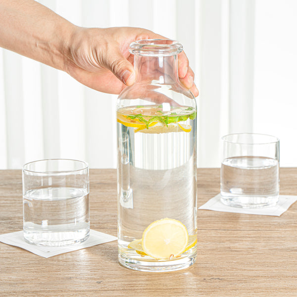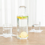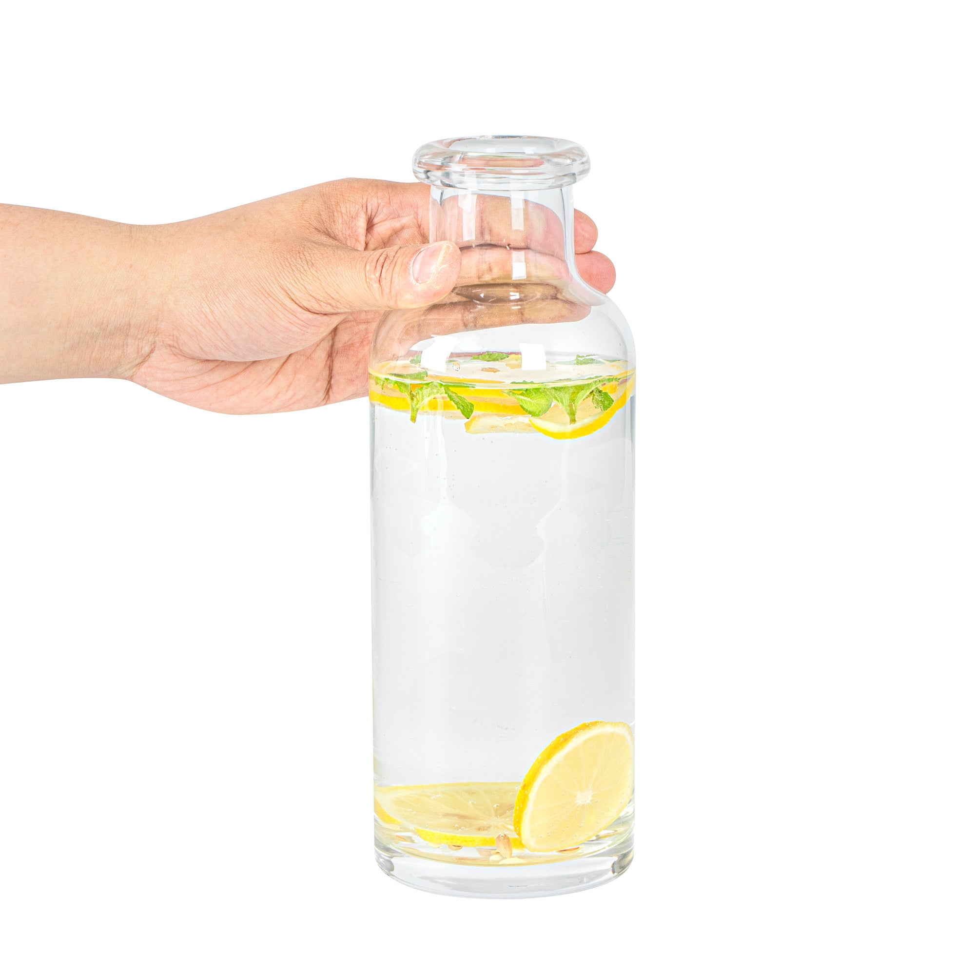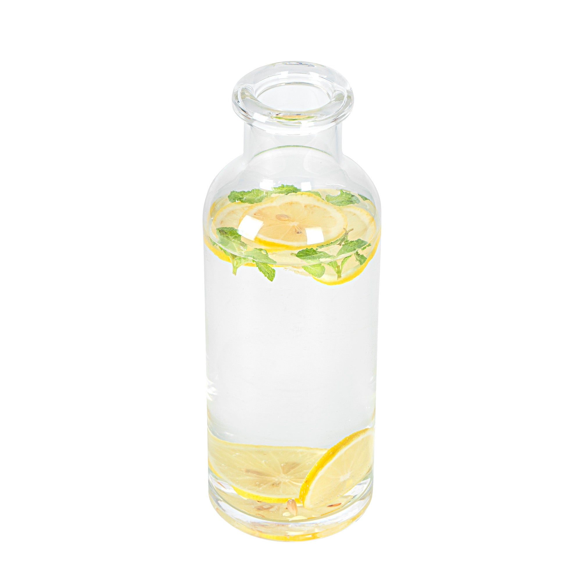 Serve freshly made juice with our Vetri 40-ounce Glass Water Bottles. These glass bottles boast a generous 40-ounce capacity, making refills infrequent and allowing your staff to focus on providing superior service. The crystal-clear glass of these glass water bottles provides excellent content visibility, enabling servers to see if beverages need refilling and enhancing service efficiency. Designed with a sleek silhouette, these glass milk bottles add a touch of character to any table setting. Crafted from lead-free soda lime glass, these glass juice bottles withstand regular use while maintaining their pristine appearance. These glass drinking bottles are dishwasher-safe, ensuring hassle-free cleaning and saving valuable time for your staff. Measuring 3.54 inches in diameter by 9.65 inches in height, these versatile glass bottles can hold up to 40 ounces and are ideal for any foodservice setting. Sold in a 6 count box.