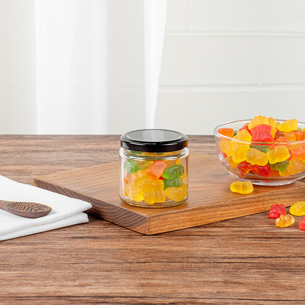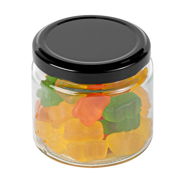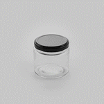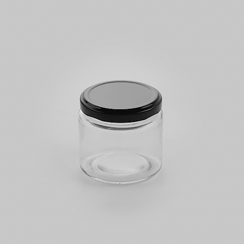 6 OZ CLEAR GLASS JAR - WITH BLACK METAL LID