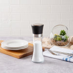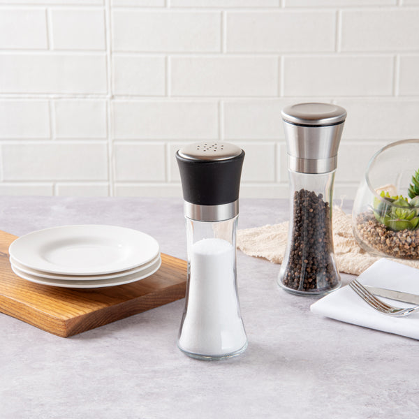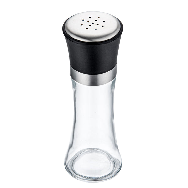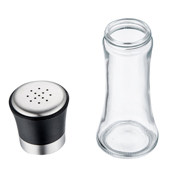 Easily serve coarse salt or whole peppercorns with our Vetri 6-ounce Glass Salt / Pepper Shaker. Designed with multiple holes, the cap ensures even salt distribution, ideal for uniformly seasoning dishes. This salt shaker includes a lid cover to avoid leftover spices when not in use. Featuring a clear finish, this black pepper shaker offers a full view of contents to check when spices need to be refilled. To cut down on your cleaning process, this refillable salt and pepper shaker is dishwashable. With a 6-ounce capacity, this glass salt and pepper shaker measures 1.75 inches long by 1.75 inches wide by 5.75 inches tall. Sold in a 1 count box.
