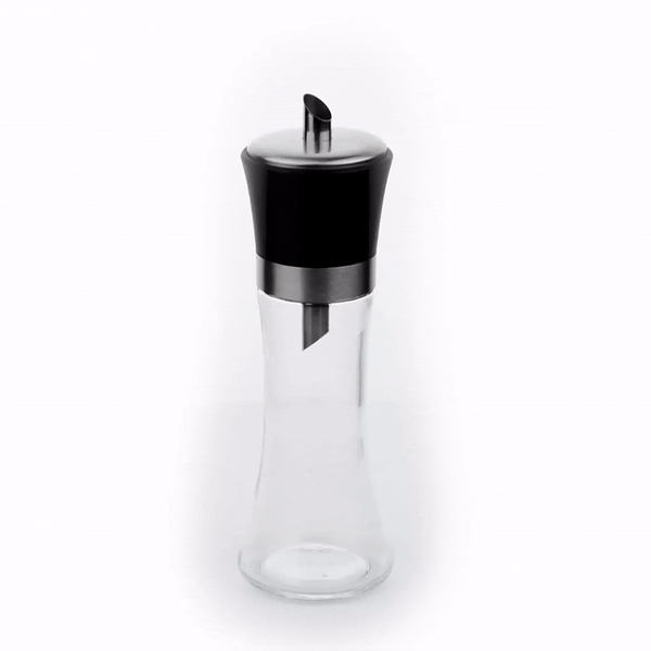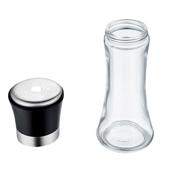 6 OZ GLASS SUGAR DISPENSER - WITH POURING SPOUT, BLACK LID