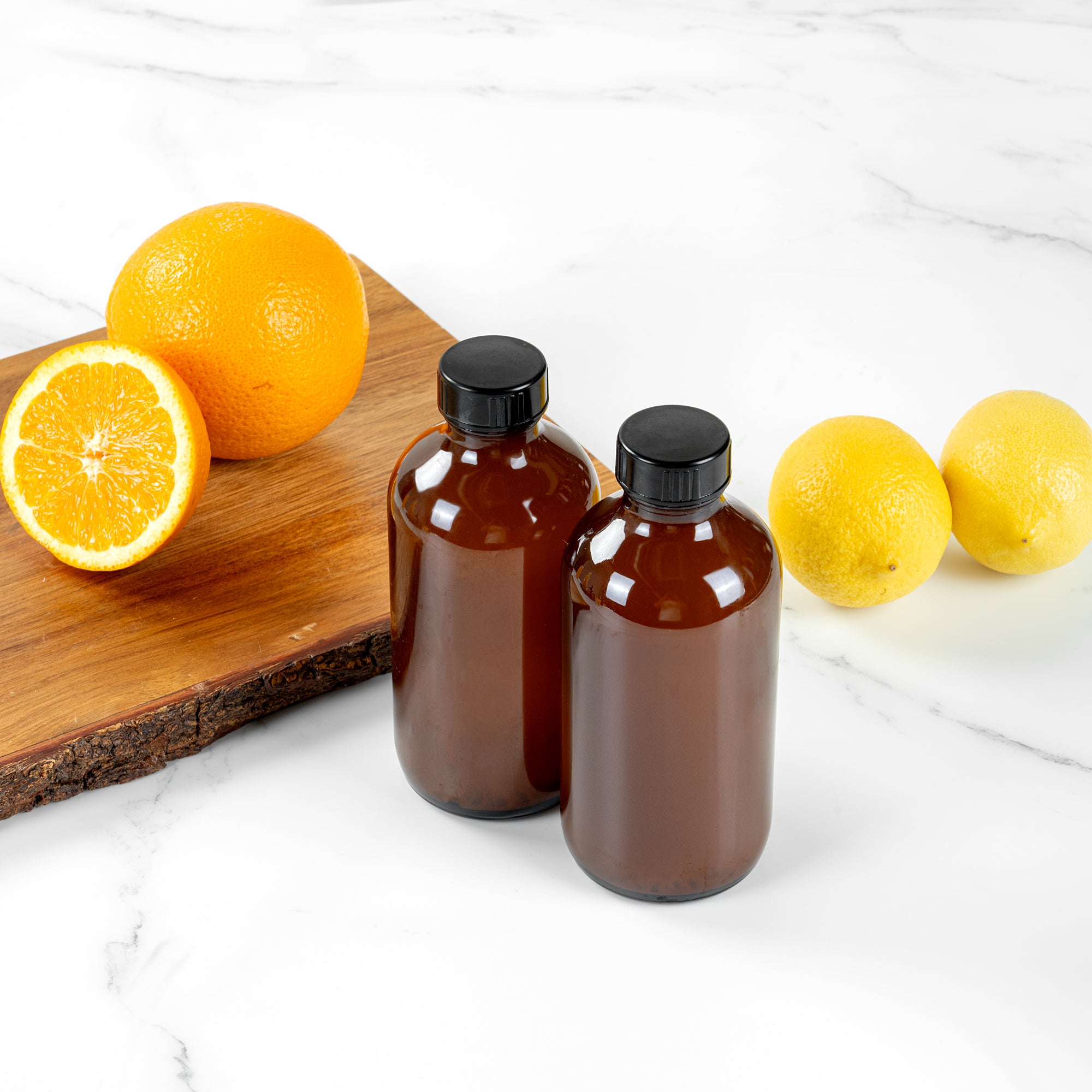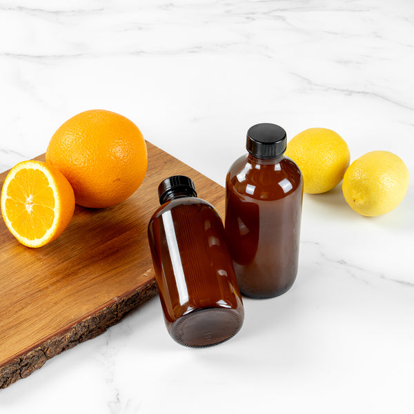 Our Vetri 8-ounce Boston Round Amber Glass Bottles are the perfect solution for preserving and displaying your liquids with style and efficiency. These glass bottles feature black phenolic caps that provide a secure, airtight seal, ideal for extending the shelf life of your products. Crafted from premium soda lime glass, these amber bottles offer excellent durability, making them perfect for showcasing a variety of liquids. The narrow mouth of these glass bottles with lids ensures controlled pouring, minimizing spills and keeping contents safely stored. With an amber finish, these empty bottles effectively shield their contents from UV light, making them excellent for preserving light-sensitive liquids. For an easy and quick cleaning experience, these amber glass bottles are dishwasher-safe, adding convenience to your routine. Measuring 2.38 inches in diameter by 5.44 inches in height, these Boston glass bottles offer an optimal 8-ounce capacity, ideal for a wide range of applications. Sold in a 12 count box.
