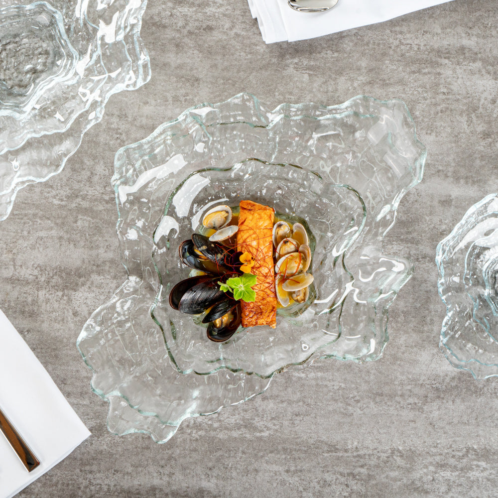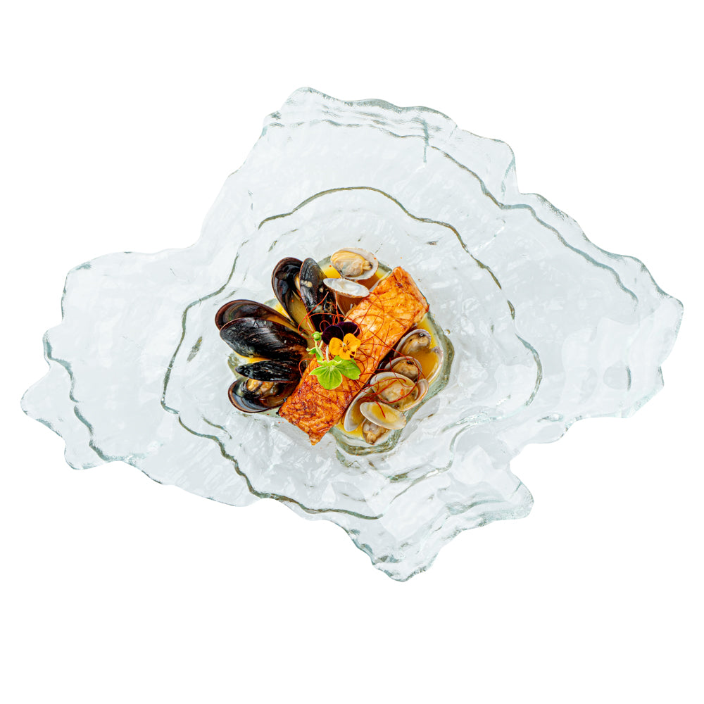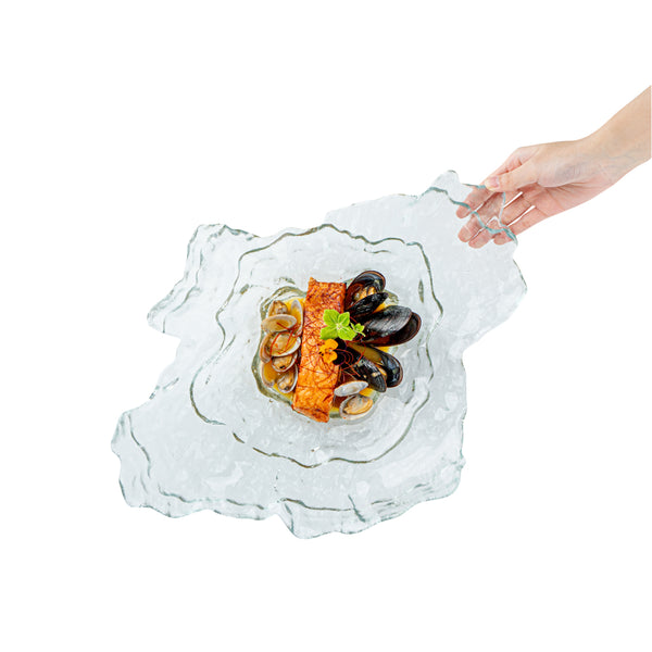 ABSTRACT CLEAR GLASS SEASHELL SERVING PLATE