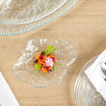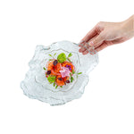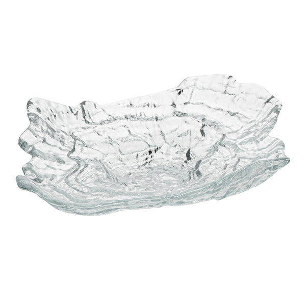 Present your dishes aesthetically with our Vetri Abstract Clear Glass Seashell Serving Plate. Made from premium soda glass, this seashell serving dish is robust and durable. This serving glass plate withstands temperatures up to 140F and and is suitable for hot and cold foods, allowing you to present cold salads to hot brownies effortlessly. Handcrafted with an intricate seashell patterned texture on the bottom, this decorative glass plate gives an attractive appeal to the food presentation. Crafted from lead-free material, this vintage glass serving plate doesn't leach undesirable substances into the food. To make the cleaning process simple, these clear serving plates are dishwashable. The raised edges of this antique glass plate avoid accidental food runaways. Measuring 8.75 inches in length by 6.75 inches in width by 1.75 inches in height, this clear glass seashell serving plate is ideal for presenting any dish in a unique manner. Shipped in a 1 count box.