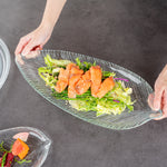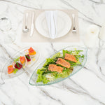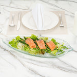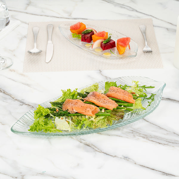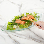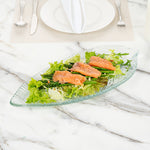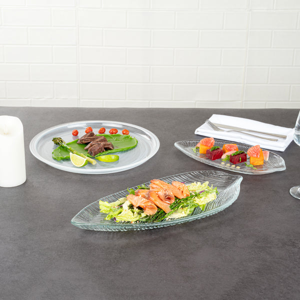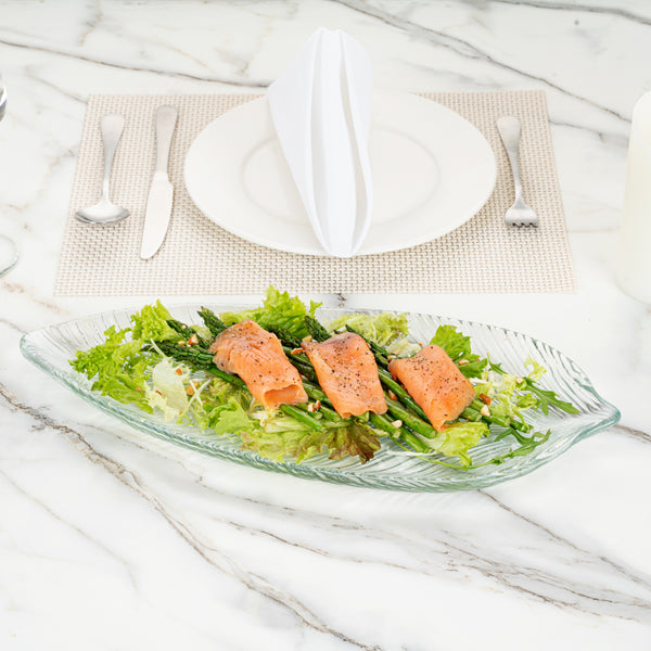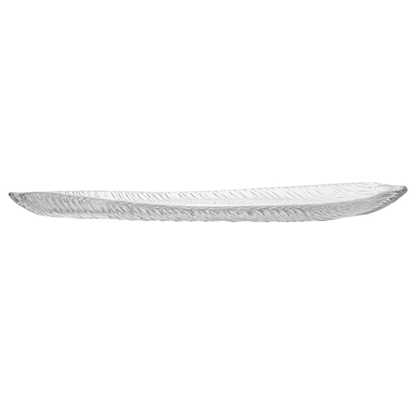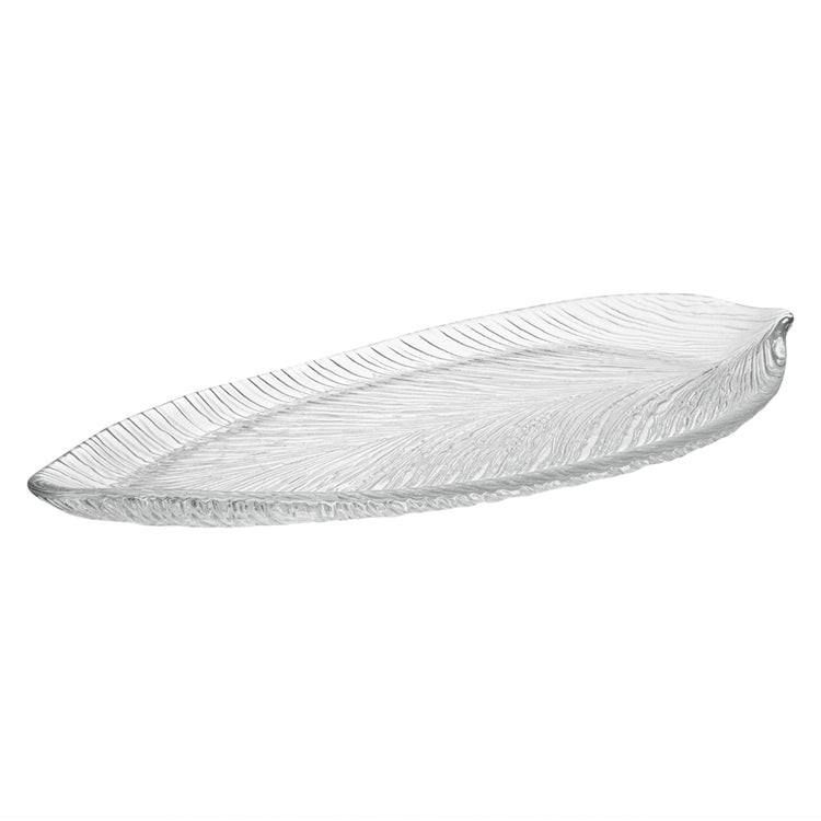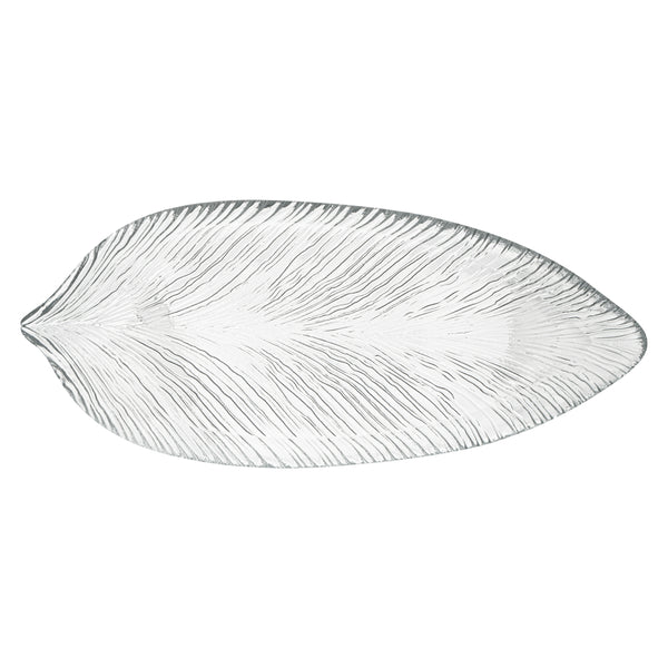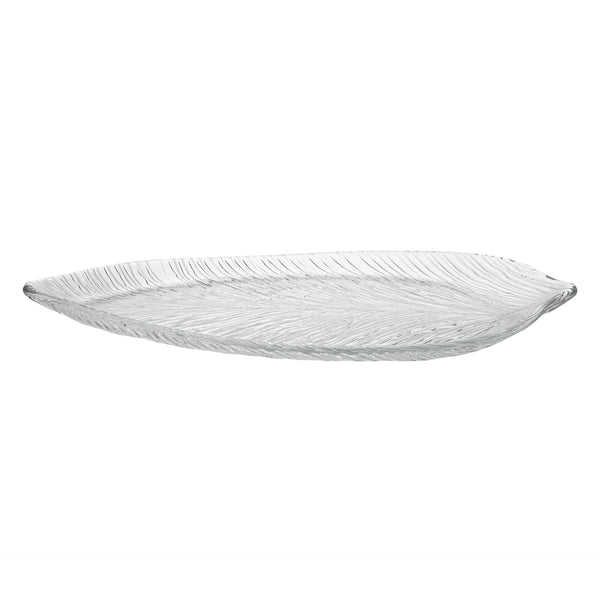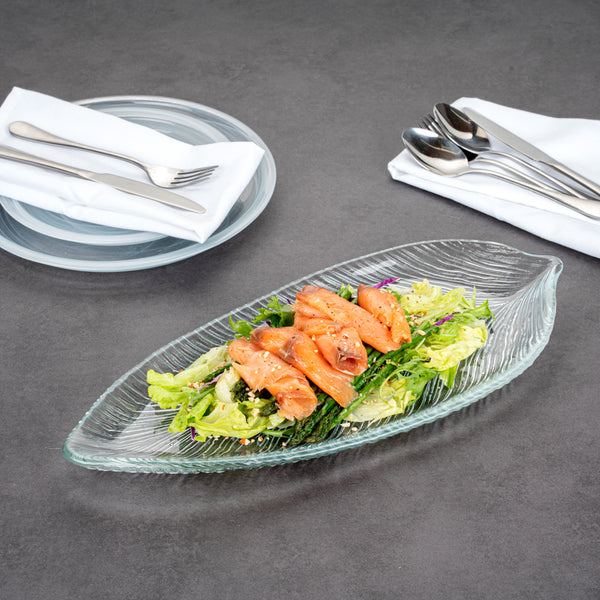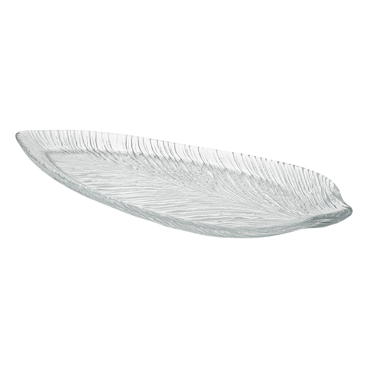 Present your food like a pro with our Vetri Clear Glass Leaf Serving Plate. Designed from premium soda-lime glass, this leaf serving plate is durable for rigorous use. Handmade with precision to detail, this glass serving plate features a leaf design to give an aesthetic appeal to your food presentation. This vintage glass serving plate withstands temperatures up to 140F and is hot and cold friendly, allowing you to serve all kinds of food. Made from lead-free glass, this antique glass plate won't leach any undesirable substances into your food. To make the cleaning process fast and simple, this clear serving glass plate is dishwasher-safe. Featuring raised edges, this clear glass plate secures food from accidentally spilling out. Measuring 17 inches in height by 7.75 inches in width by 1.25 in height, this leaf-patterned glass serving dish is great for presenting all kinds of food. Shipped in a 1 count box.