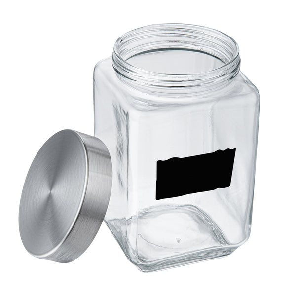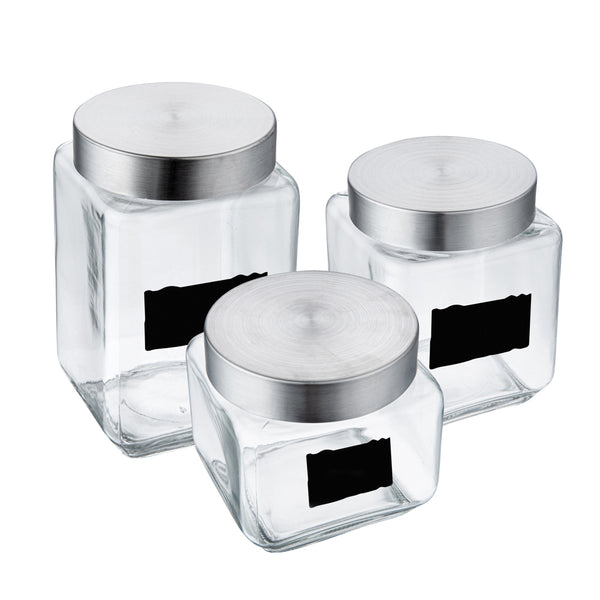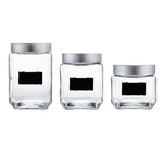 GLASS 3-PIECE STORAGE JAR SET - WITH LID, CHALKBOARD LABEL
