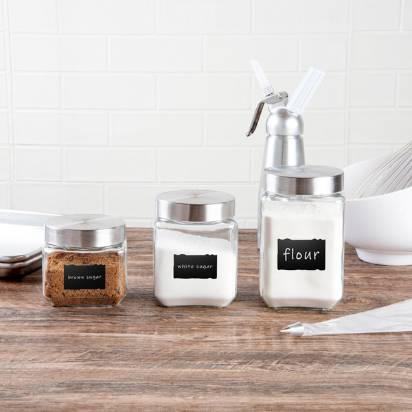 - Chalkboard label enables easy identification and avoids mixing up ingredients