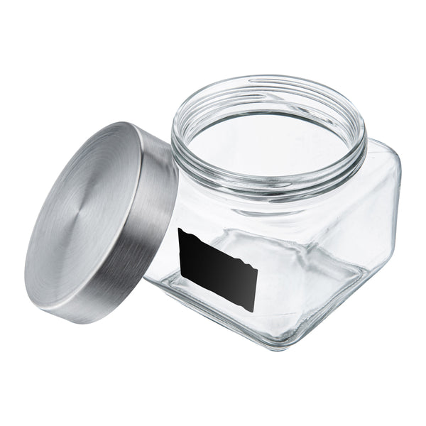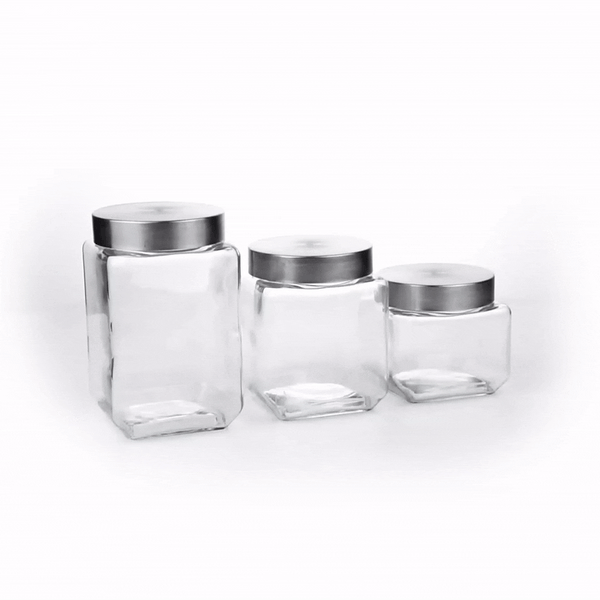 Display a clear view of your sweet treats using our Vetri Glass 3-Piece Storage Jar Set. These glass food storage containers come with 3 jars in a set to hold three times the amount of spices or supplies. To easily store a variety of ingredients, these glass containers with lids are hot and cold friendly. To preserve the freshness of your foods, these glass food containers have an airtight seal. For less hectic cleaning, these storage jars with lid have a dishwashable design. Featuring a clear glass finish and chalkboard label, you can easily read and label your storage containers without the worry of mixing them up. The small glass food container has a capacity of 25.4 ounces and measures 3.9 inches long by 3.9 inches wide by 4.3 inches tall. The medium glass storage jar has a capacity of 37.2 ounces and measures 3.9 inches long by 3.9 inches wide by 5.7 inches tall. The large glass storage container has a capacity of 50.7 ounces and measures 3.9 inches long by 3.9 inches wide by 7.3 inches tall. Sold in a 1 count box. Each order comes with 1 set of 3 jars.