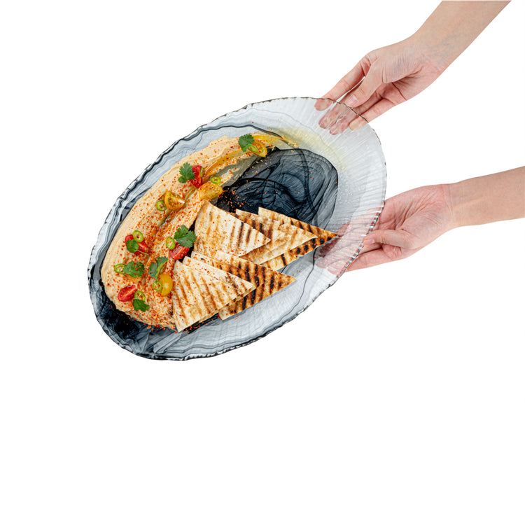 OVAL BLACK GLASS FOCUS SERVING PLATE
