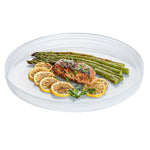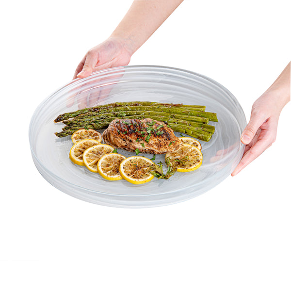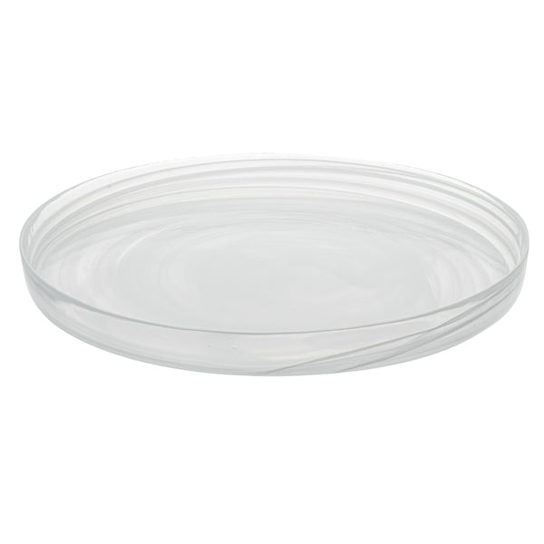 Make your guests go in awe with your food presentations by using our Vetri Round White Glass Alabaster Plate. With a durable soda-lime glass construction, this round glass plate is made for rigorous use at your establishment. Suitable for serving both hot and cold foods, this glass serving plate withstands temperatures up to 140F, making it ideal for presenting cold salads and hot brownies alike. This antique glass plate is made from lead-free glass and does not spread unwanted substances into food. This clear serving plate is dishwasher-safe for simple cleaning. With its ink swirls, this white alabaster dinnerware will turn heads at your next event. Measuring 12.99 inches in diameter by 1.37 inches in height, this serving glass plate is perfect for serving pancakes, sandwiches, and lasagna to show off their layers easily. Shipped in a 1 count box.