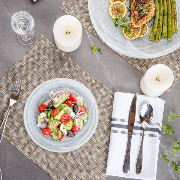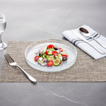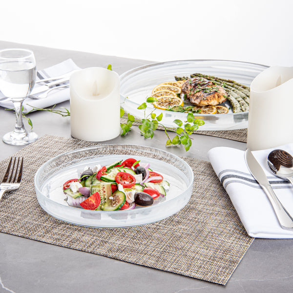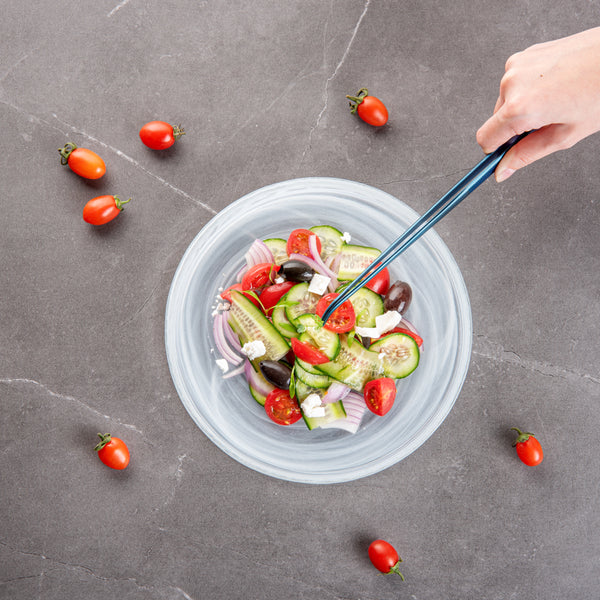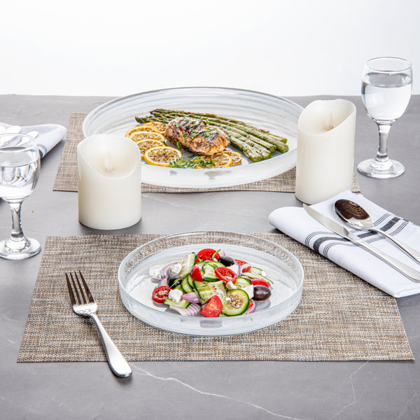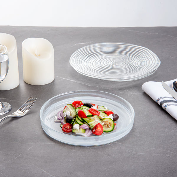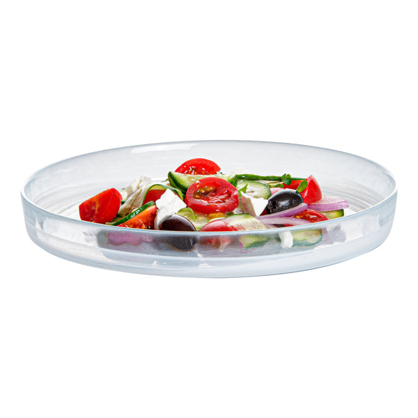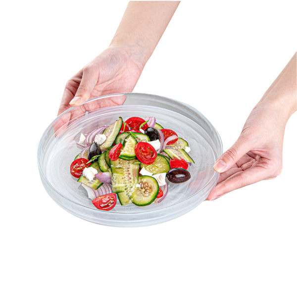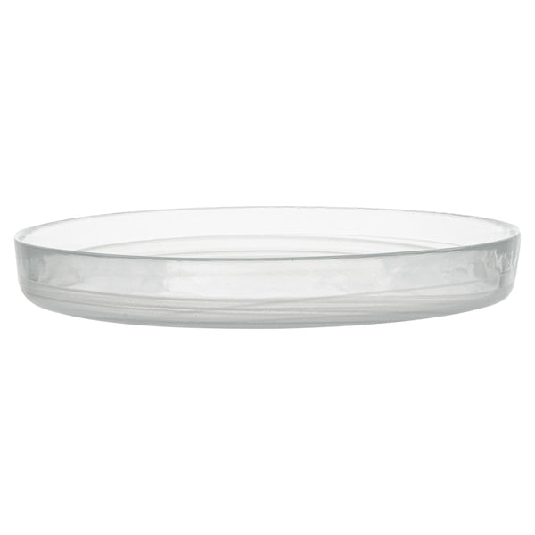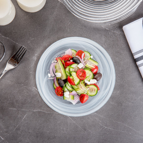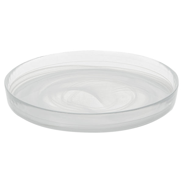 Add a fun touch to your food presentation with our Vetri Round White Glass Alabaster Plates. Made from premium soda-lime glass, these glass serving plates are durable and can hold hefty foods effortlessly. Withstanding up to 140F, these glass serving platters allow you to serve food hot and cold. For a quick and simple cleanup, you can also place them in the dishwasher. With a lead-free composition, these antique glass plates will not leach out any unpleasant substances. These glass serving plates secure food from accidental spills or runoffs with slightly raised edges. The swirls of color in this white alabaster dinnerware will stand out at your next event. Measuring 8.25 inches in diameter, these vintage glass plates are perfect for serving all kinds of food. Shipped in a 6 count box.