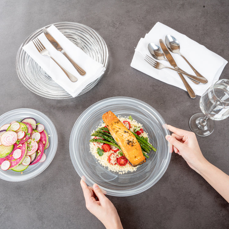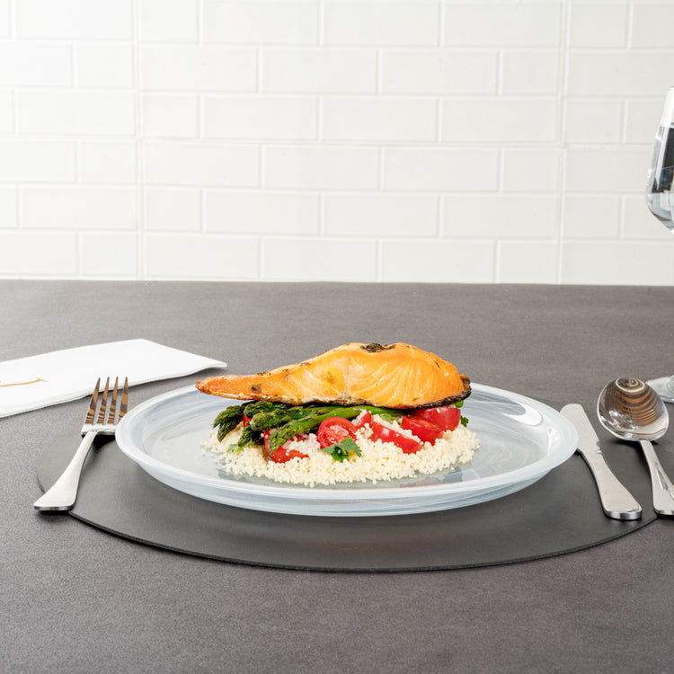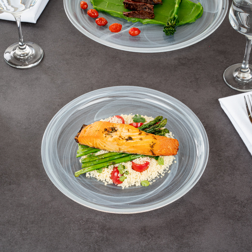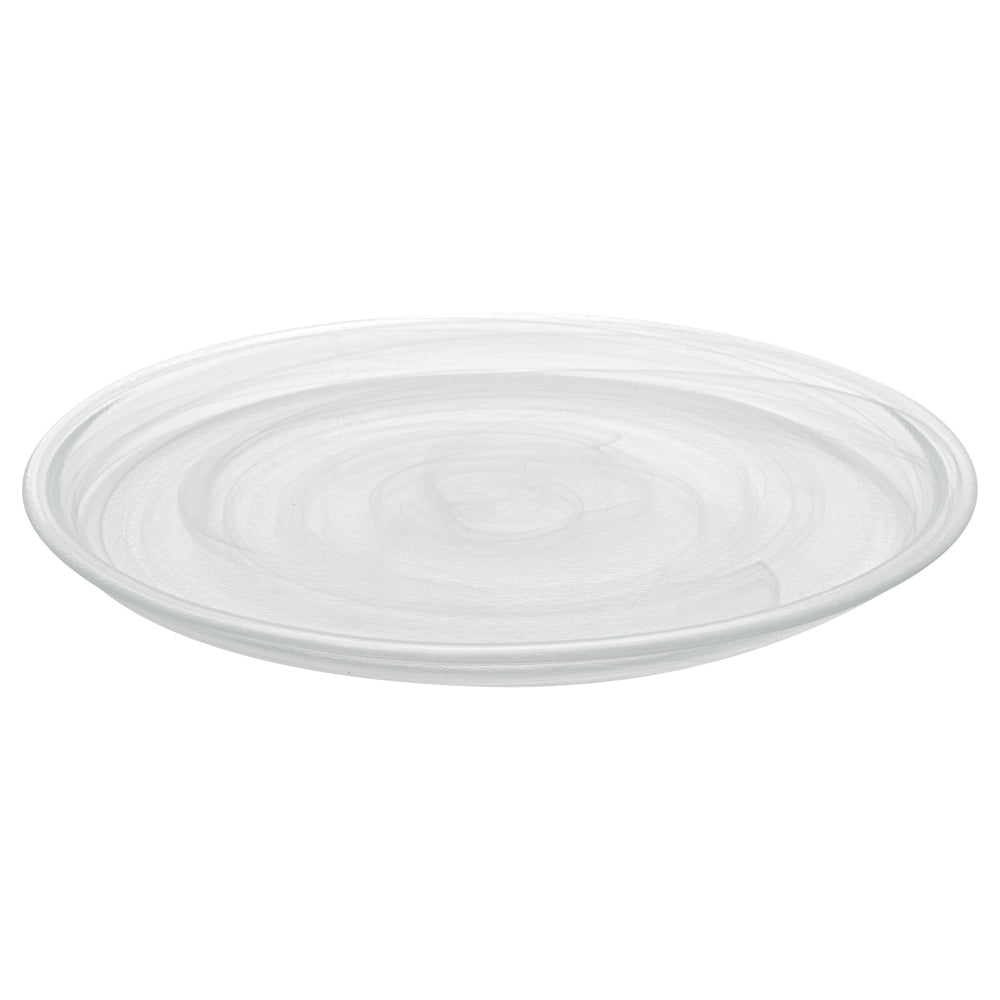 Plate foods like a pro with our Vetri Round White Glass Solar Plates. The premium soda-lime glass used in these glass serving plates makes them sturdy for holding heavy foods. With these glass serving plates, you can serve hot or cold foods without worrying about cracking. These antique glass plates are made of lead-free materials and don't leach any undesirable substances into foods. Plus, these fancy plates withstand up to 140F, allowing you to toss them in the dishwasher. Featuring raised edges, these glass plates prevent food from spilling. The translucent white finish of these serving glass plates gives a classic touch to your food presentation. Measuring 11 inches in diameter, these white glass solar plates are perfect for pasta, salads, or brownies, Shipped in a 6 count box.