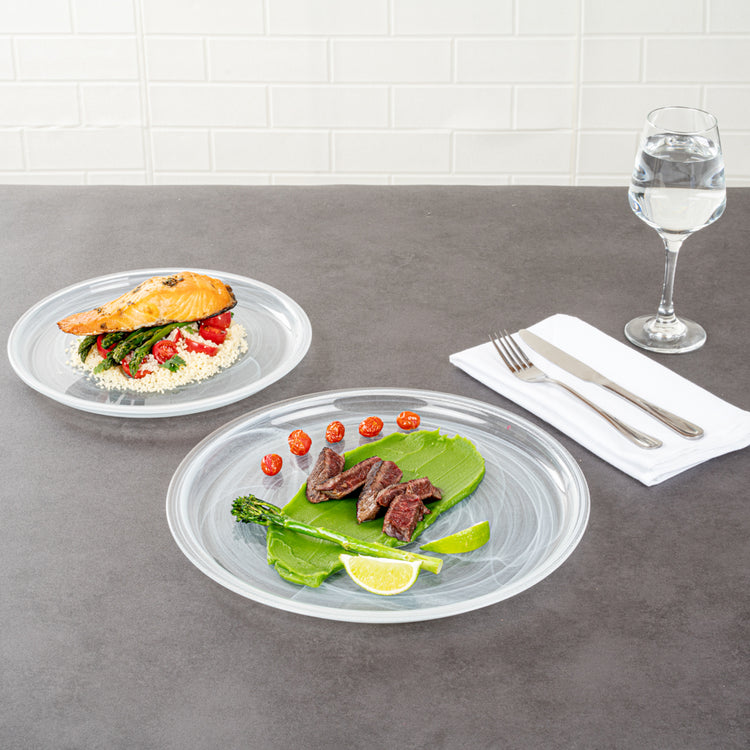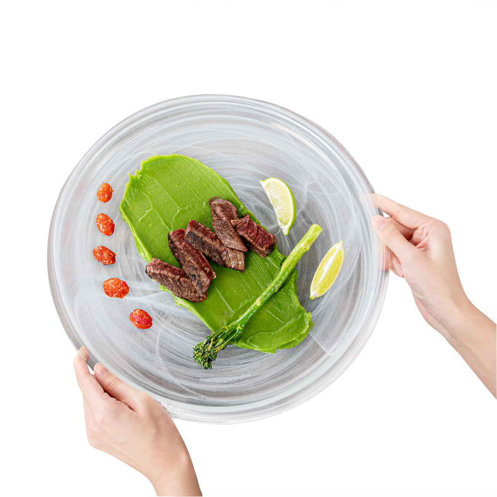 Exquisitely present your dishes by serving them in our Vetri Round White Glass Solar Plates. These serving glass plates are made of premium soda-lime glass without lead and thus do not react with your food. Conveniently use these white decorative glass platters to serve hot or cold foods, as they withstand up to 140F and are suitable for both. To speed up the cleaning process and save time, these vintage glass serving platters are dishwashable. Styled with a translucent white finish, these round solar glass serving plates add a ravishing beauty to your table settings and enhance food presentation. Measuring 13 inches in diameter, these antique glass platters are a great addition to your tableware. Shipped in a 6 count box.