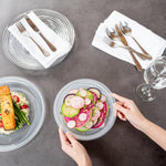 Enhance your food presentation with our Vetri Round White Glass Solar Plates. Designed from high-quality soda-lime glass, these round solar serving dishes are durable to hold hefty foods. Suitable for serving hot or cold foods, these glass serving plates are ideal for any occasion. These pressed glass serving plates withstand temperatures up to 140F and are dishwashable for a quick and simple cleanup process. With their lead-free material construction, these antique glass plates don't leach any unwanted substance. The slightly raised edges of these serving glass plates prevent food from spilling out accidentally. With their translucent white shade, these serving glass plates add a classic touch to your food presentation. Measuring 8.25 inches in diameter, these antique glass serving plates are great for serving all kinds of appetizers, entrees, or desserts. Shipped in a 6 count box.