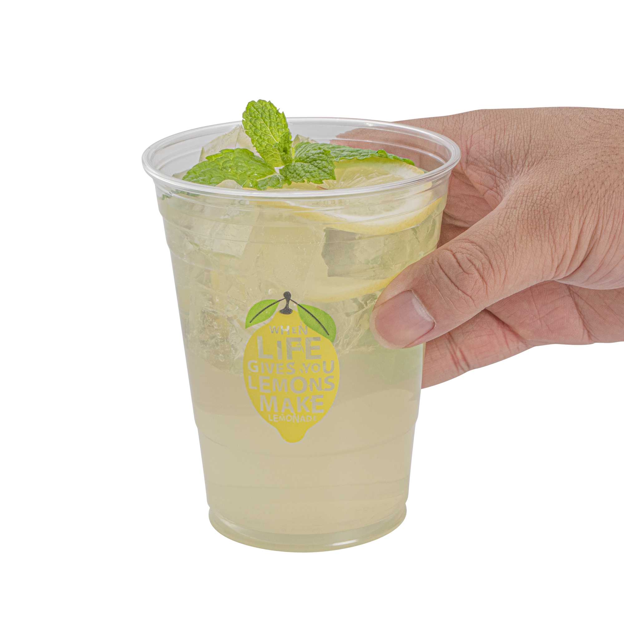 Enhance beverage service with durable and visually appealing solutions. Visage Crack-Resistant Plastic Cups combine crack-resistant PET construction with an eye-catching lemonade-themed print, ensuring your 16 oz plastic cups withstand high-traffic environments while boosting drink presentation. Designed with sleek, tapered sides, these clear plastic cups offer easy handling and serving, making them ideal for concession stands and amusement parks. The rolled rim ensures a secure fit with compatible lids (sold separately), maintaining the integrity of cold drink cups during transport. With a height of 5 inches, these cups are perfect for eco-conscious businesses aiming to serve fountain drinks, lemonade, and smoothies with confidence. Maximize operational efficiency and customer satisfaction with these versatile cold drink cups. Each order includes 100 Visage Crack-Resistant Plastic Cups.