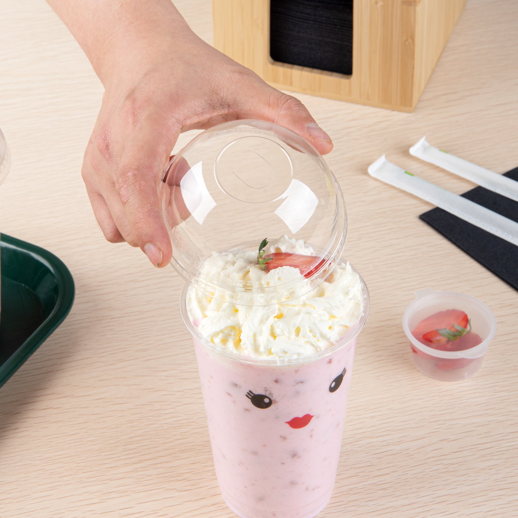 Both types of lids are compatible with our 8-, 12-, 16-, and 20-ounce coffee cups. Our beverage cup lids are leak-resistant and expertly snap in place to create a tight and secure seal to prevent spills.