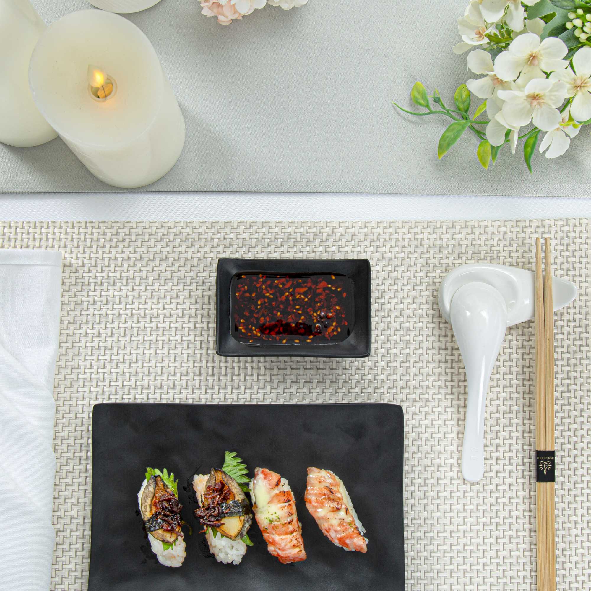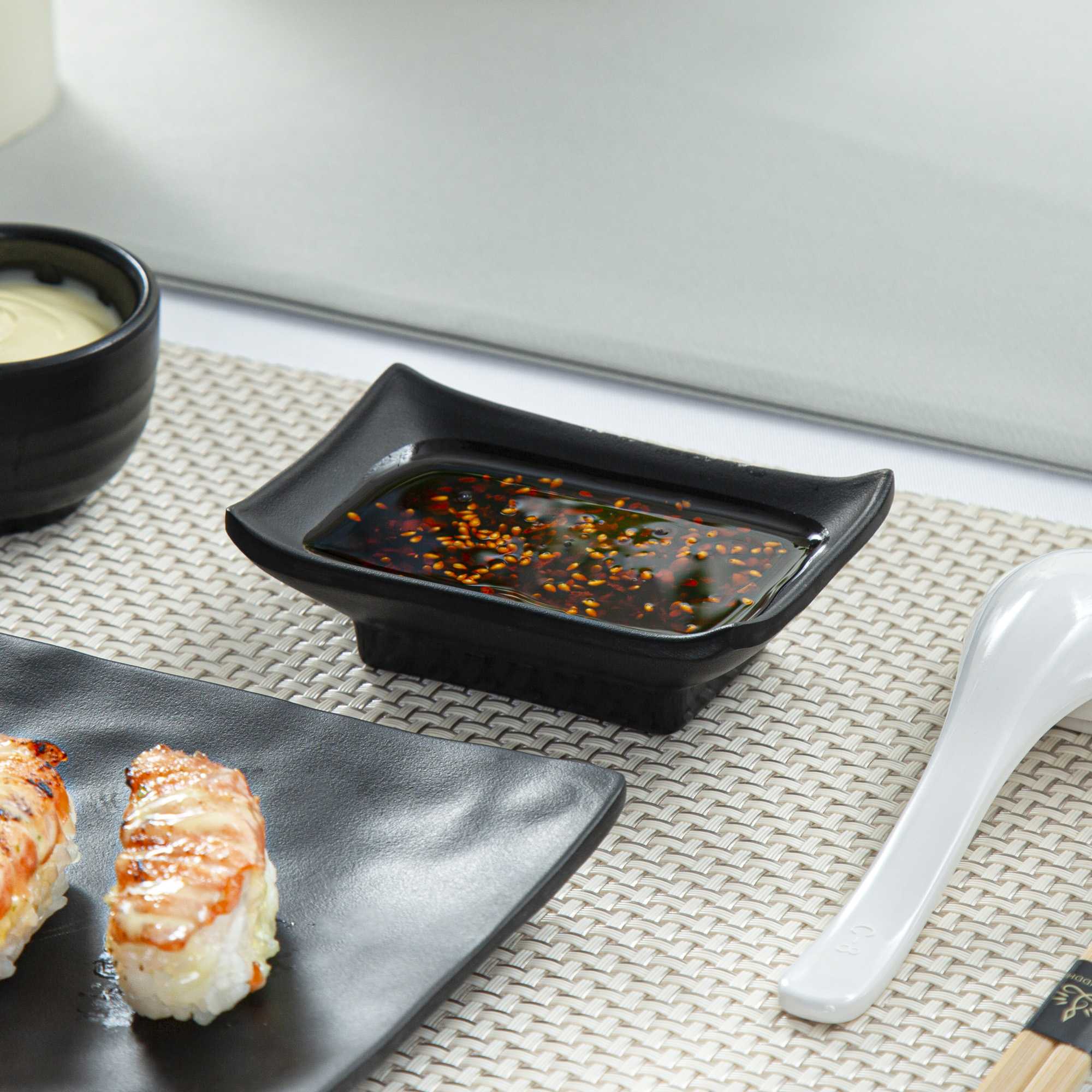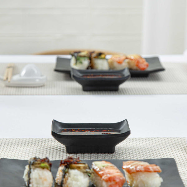 1 OZ RECTANGLE BLACK MELAMINE SAUCE DISH - JAPONAIS