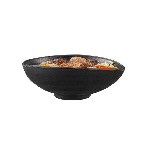 15 OZ ROUND BLACK MELAMINE FREEFORM SMALL BOWL - JAPONAIS, BLACK STONE