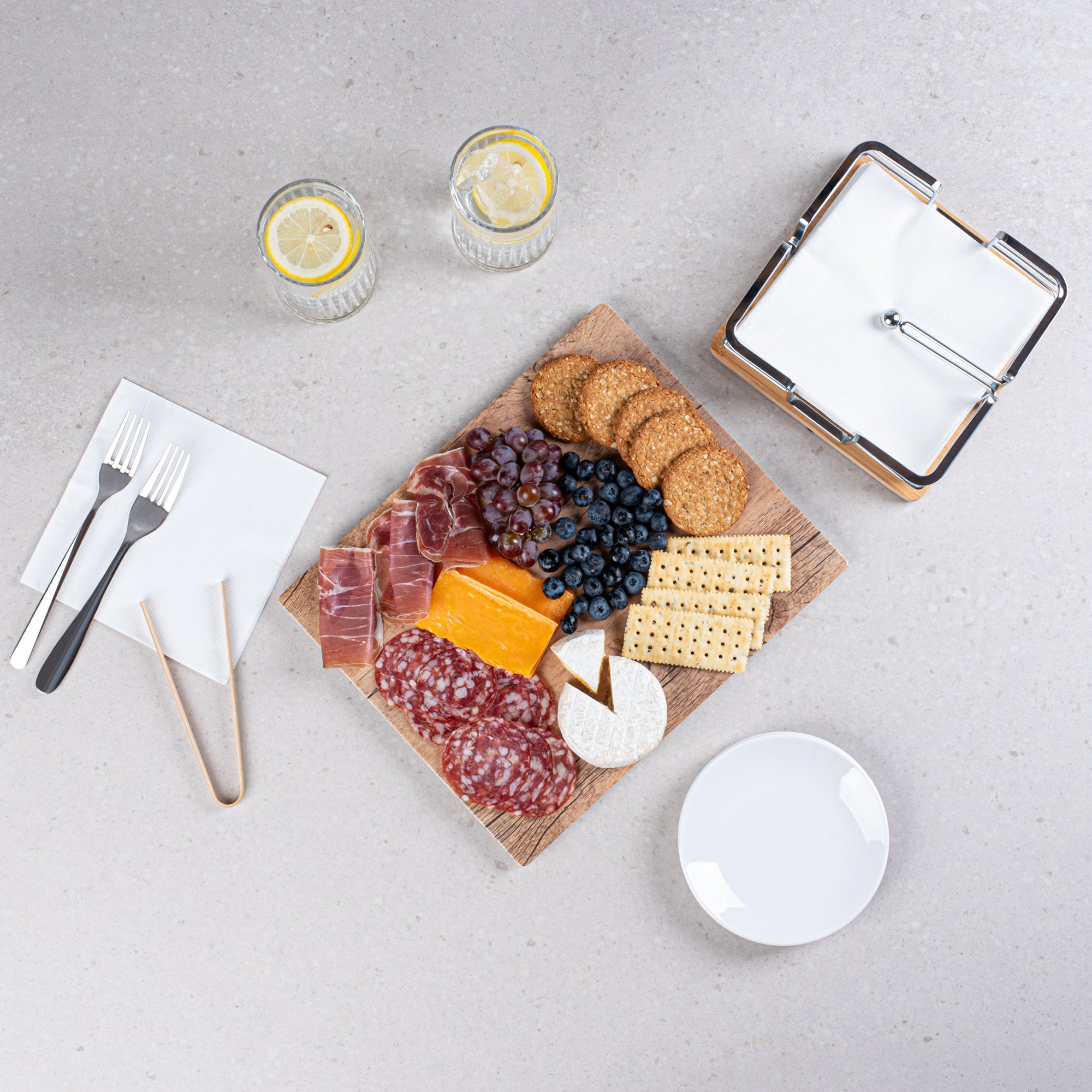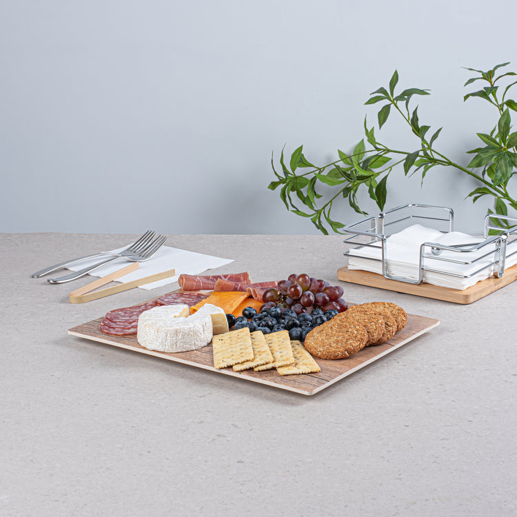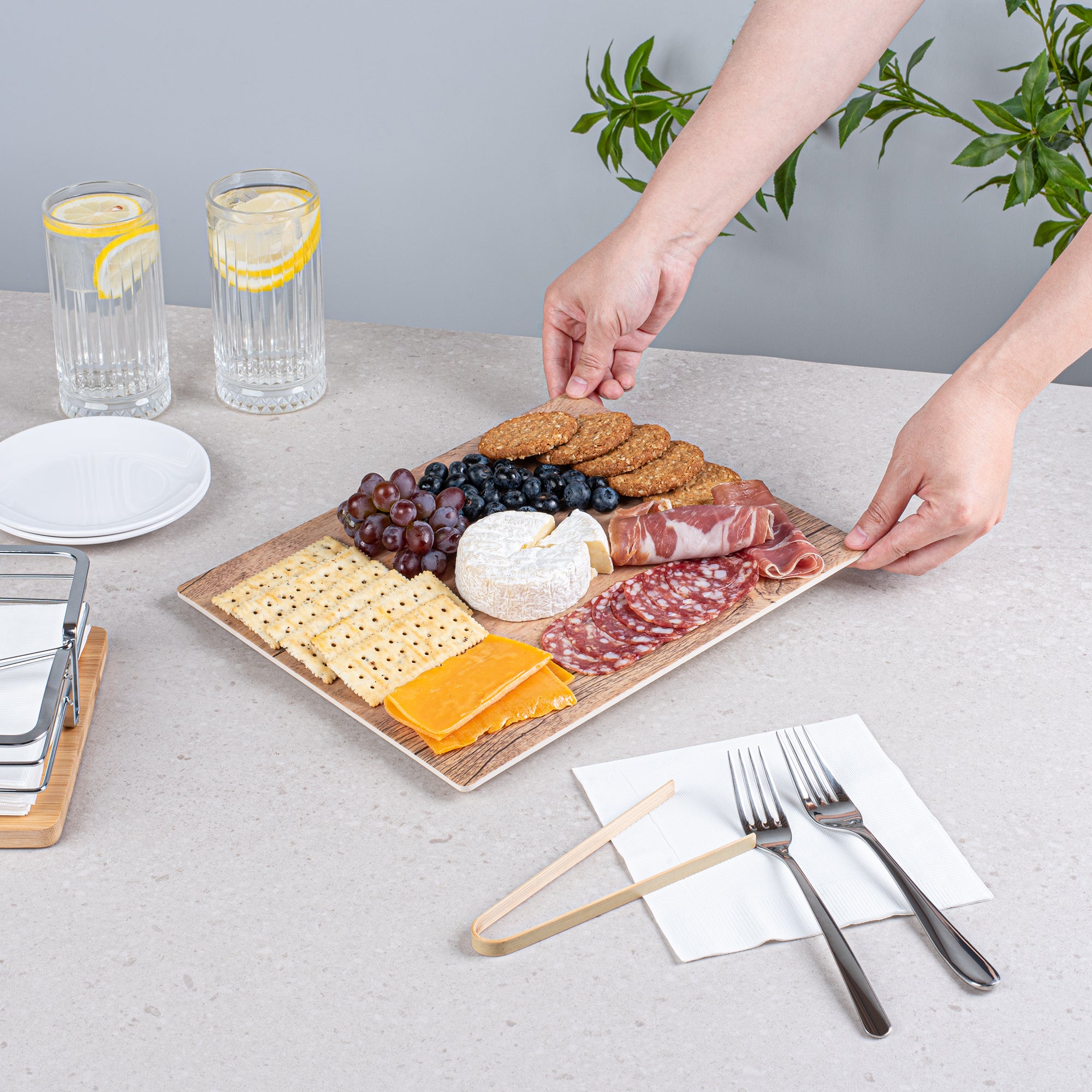 - Faux wood look provides a warm and rustic touch to any food presentation